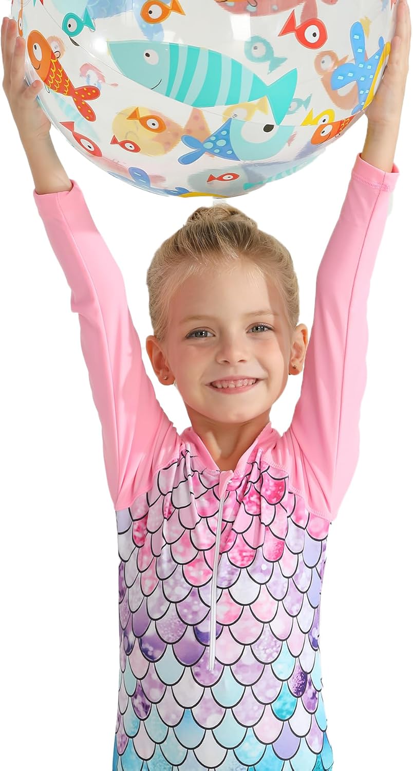 Girls Long Sleeve Swimsuit Zipper Rash Guard One Piece Bathing Suits UPF 50+ Sun Protection Swimwear 2-10 Years