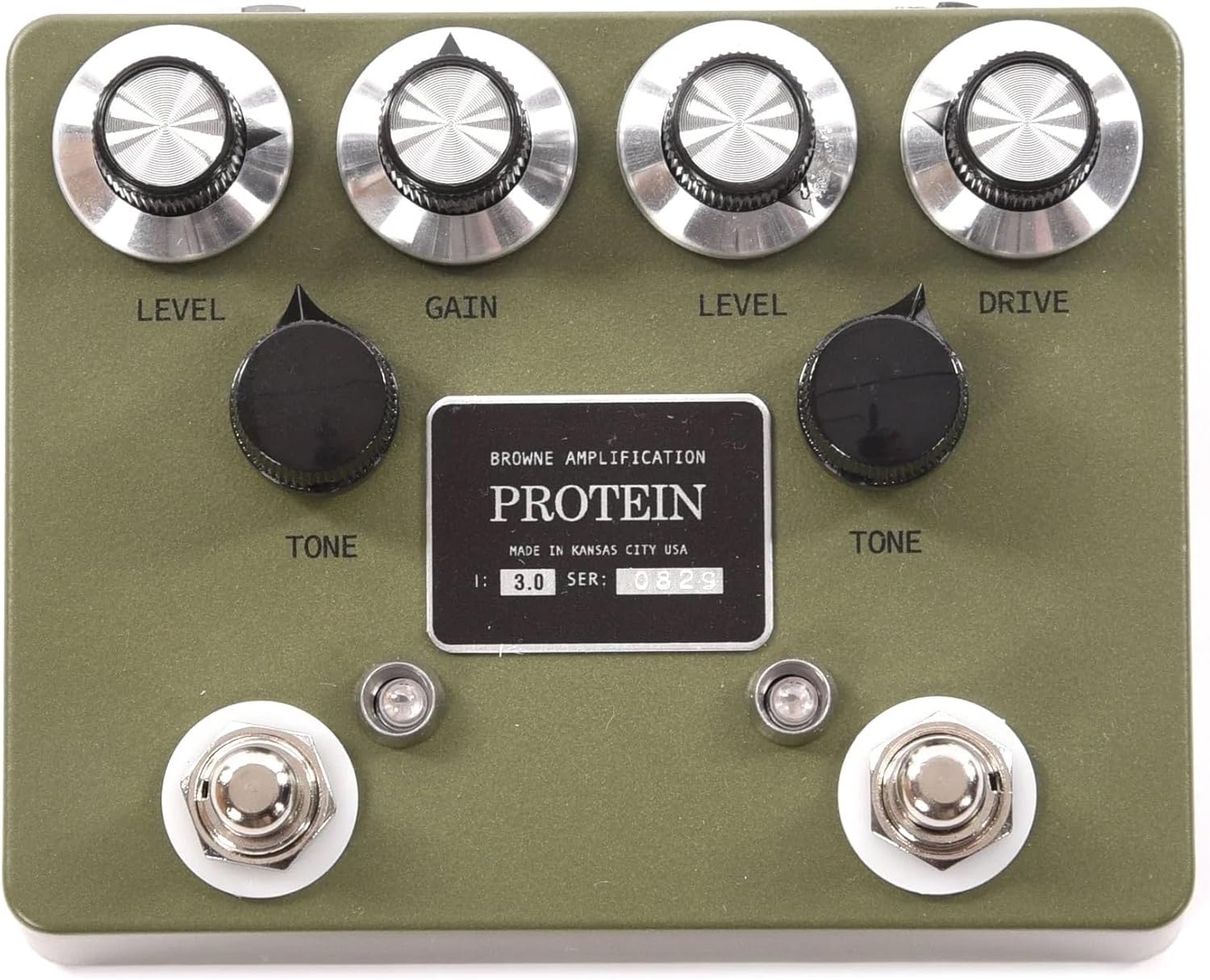 Browne Amplification Protein Dual Overdrive combines the classic transparent tone with top mounted jacks and softswitching for a pedal that will never leave your board.