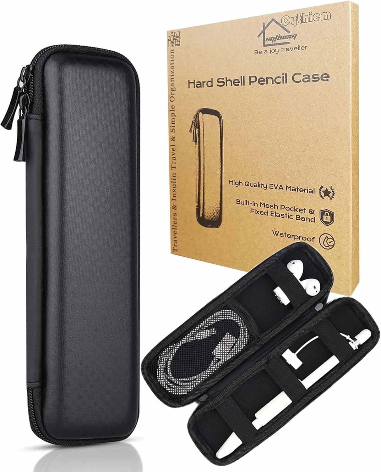 Slim Hard Pen Cases for Adults, Travellers, Insulin Travel, Thin Black Pencil Case Hard Shell, Small Waterproof Pencil Box Organizer for Apple Pencil Usb C, Headphones, Executive Fountain Pens
