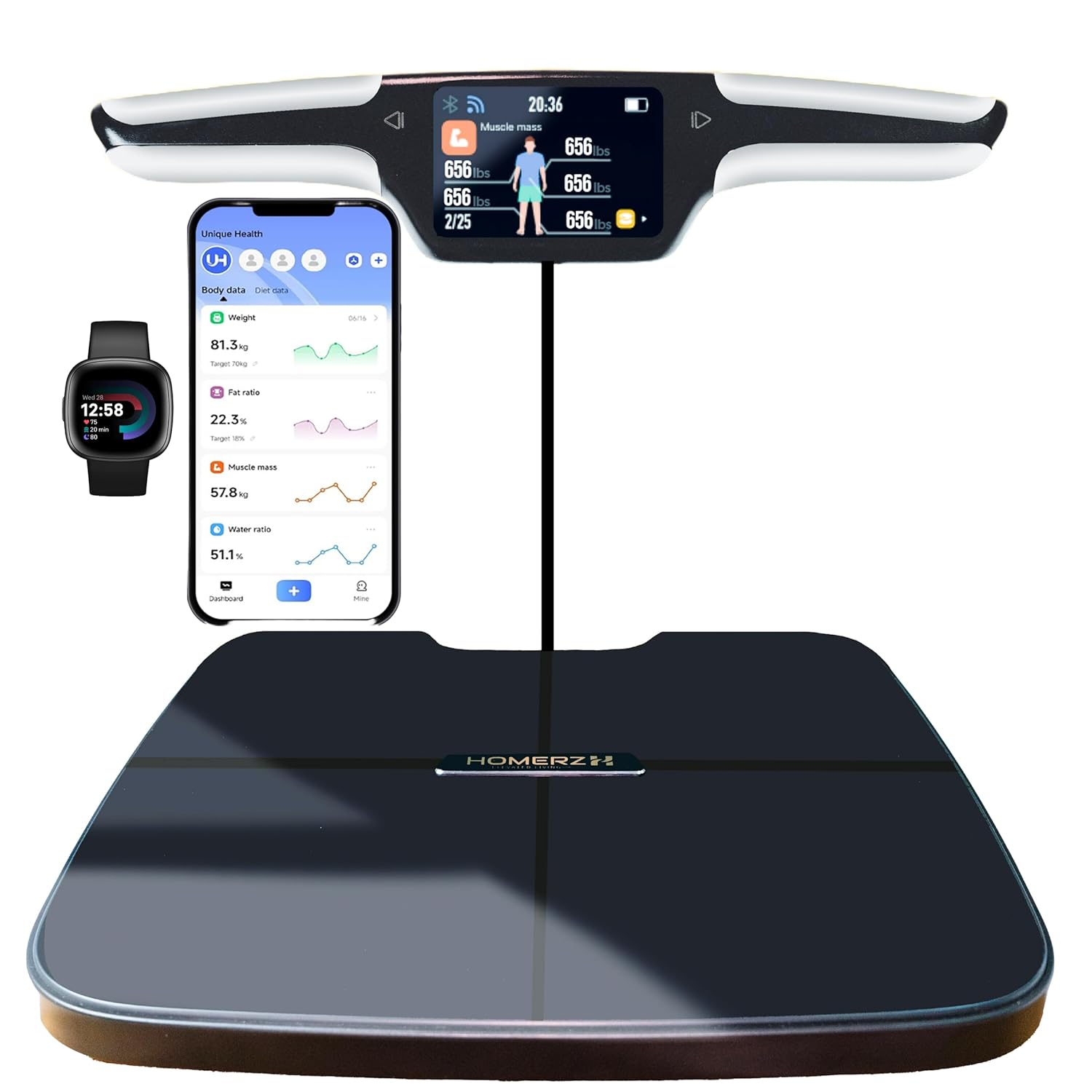 Homerz Body Fat Scale – Smart Scale with BMI, Body Fat, Muscle Mass, Full Body Composition Scale with Body Fat Analysis, Body Scan Scale with Handle, Body Scanner, Biometric Analyzer