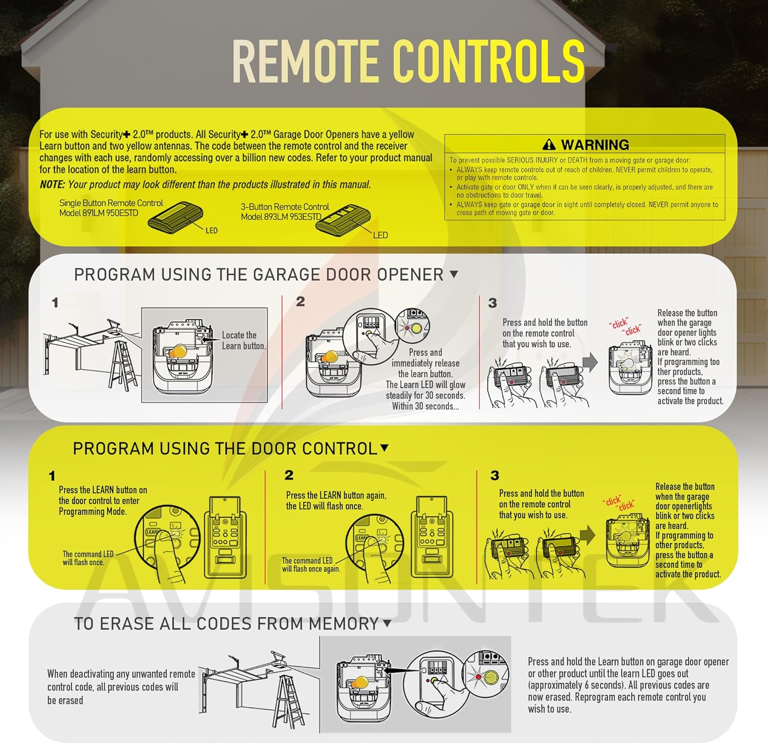 **Compatibility**:Works only for a Yellow Learn Button of 2011 to Present LiftMaster/Chamberlain Garage Door Opener Security+ 2.0 myQ.Replacement for 953ESTD/893LM. Not Support Dip Switch Garage Door Opener !!
