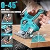 【Tool-Free Blade Change & Safety Lock】Quickly and easily change High-speed steel blades with the tool-free, lever-action design, saving you time and effort. The built-in safety lock off button ensures safe operation, preventing accidental activation and reducing the risk of injury. This jigsaw tool compatible with Makita 18V Battery is designed with user safety and convenience in mind