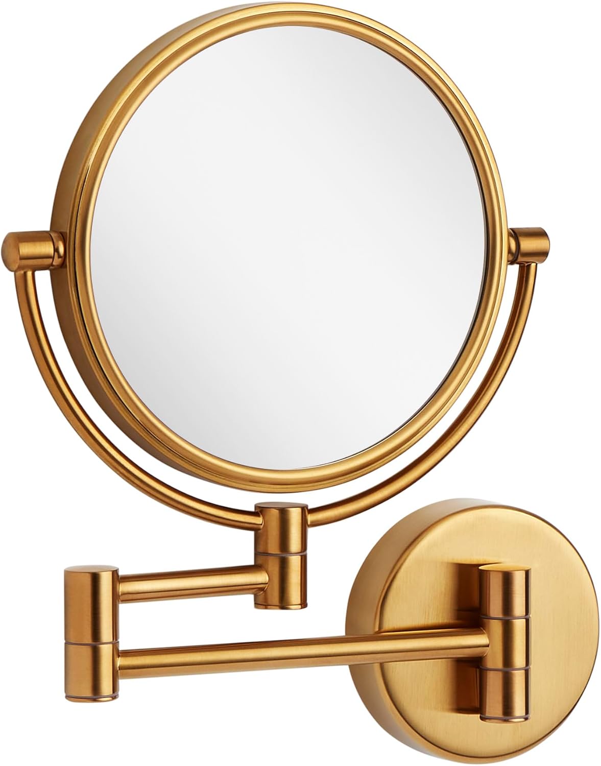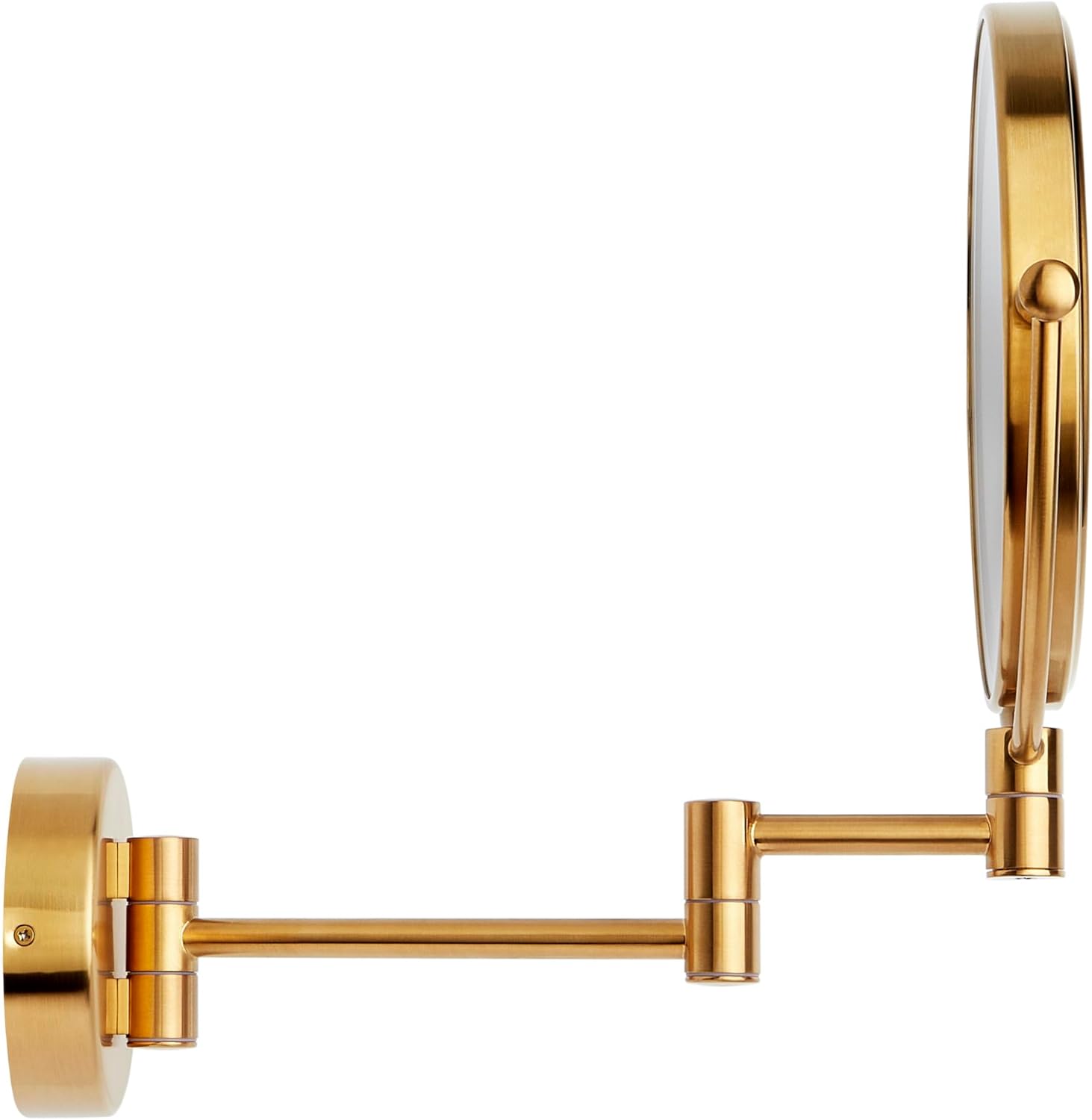 Get ready for your day in style with the Round Magnifying Double-Sided Wall-Mount Makeup Mirror. Equal parts convenient and sleek, this accent adds an unmistakable sense of modern style to your bathroom. Featuring one regular side and one with 5X magnification, this mirror easily accommodates your needs. The frame has been made from durable stainless steel that will resist corrosion for years to come. Mounting hardware is included for easy installation. Signature Hardware 953370 Features: Covered under Signature Hardware's 5 year limited Frame constructed from stainless steel with a glass mirror Mirror frame will resist rust and corrosion through everyday use Flat edge gives the mirror a seamless and look All hardware required for installation is included Double sided Side one is normal magnification Side two is 5x magnification Switch type: Rocker Signature Hardware 953370 Specifications: Height: 12-5/8" (top to bottom) Width: 9-5/8" (left to right) Depth: 2" to 12-1/4" (front to back) Base Plate Height: 4-1/4" Base Plate Width: 4-1/4"