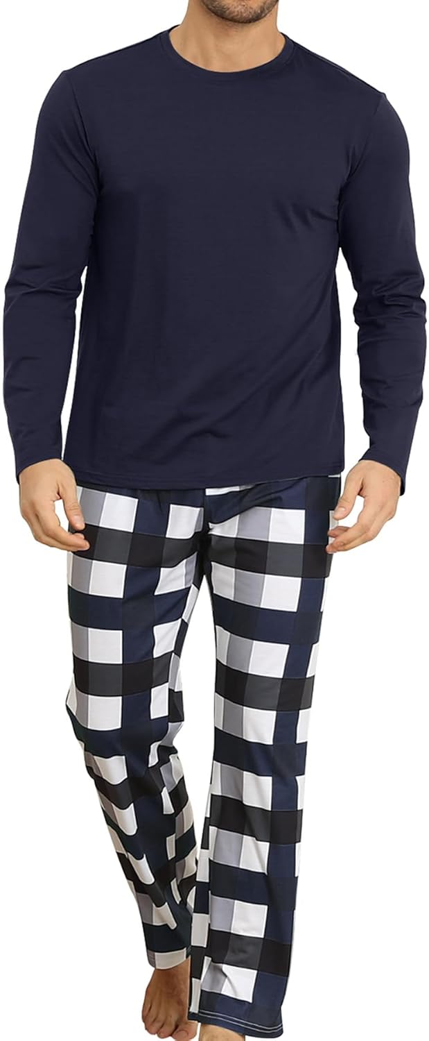 KUYIGO Men 2 Piece Pajamas Set Plaid Sleepwear Loungewear Nightwear PJ Sets
