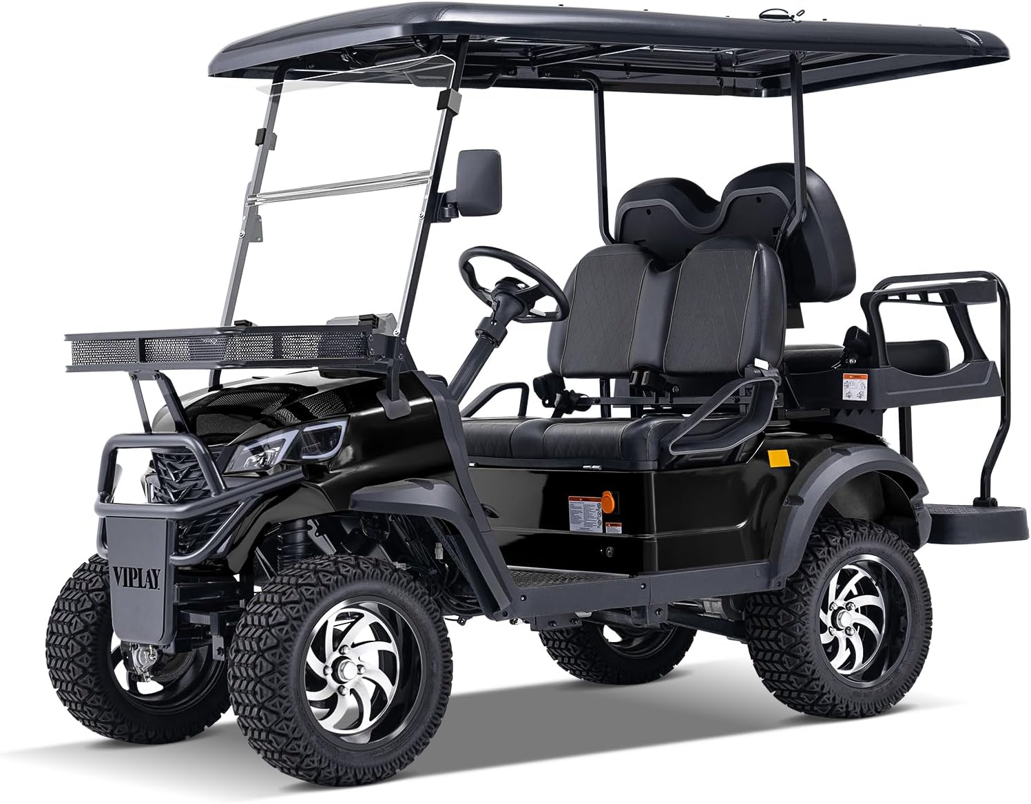 【Heavy-duty Design】It features a rust-resistant, high-strength aluminum frame, chassis and cargo compartment with state-of-the-art ergonomics. From its rugged front bumper to its flatbed cargo bed with industrial cargo option, the VIPLAY golf cart is your best choice.