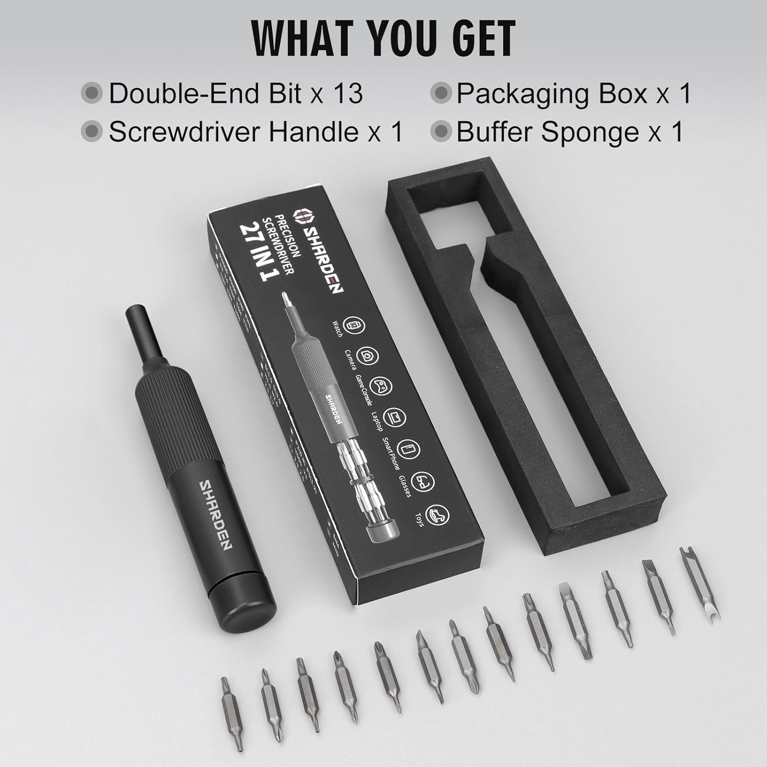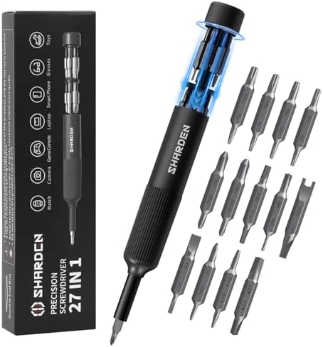 Sharden 27-in-1 Precision Screwdriver Set Multi Bit Small Screwdriver Magnetic Mini Screwdriver Set Pen Style Manual Repair Tool Kit For Eyeglass, Watch, Computer, Jewelers, Laptop, Electronics, Phone