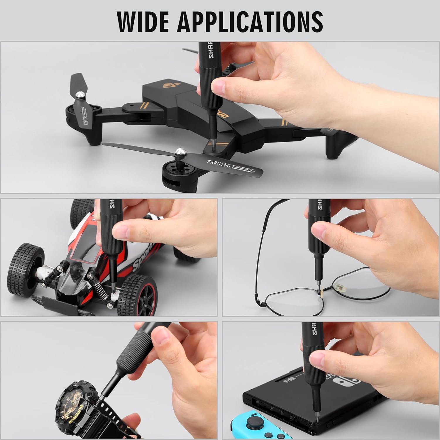 DURABILITY: The micro screwdriver set bits are crafted from high quality CRV steel with high hardness,excellent precise and good toughness, extendeding service life without damaging the devices