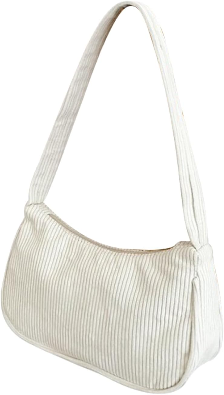 Small Shoulder Bag for Women, Corduroy Small Handbag Shoulder Handbag with Zipper, Stylish Womens Shoulder Purse (white)