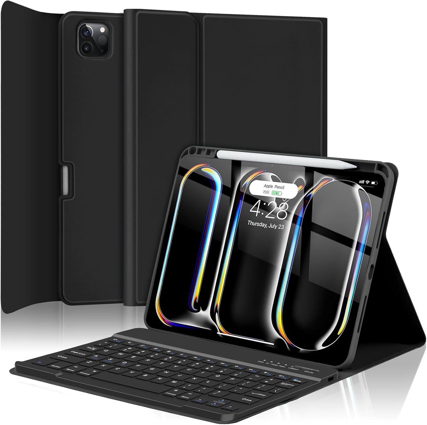 【Multiple Viewing Angle and Pen Holder】Keyboard Case for iPad Pro 11-inch (M4) is magnetically attached and very versatile and the thoughtful design easily adjusts to whatever comfortable angle suits you best. That makes the iPad work like a laptop, so it's Perfect for working, writing, taking notes, typing, and editing or watching videos. Let you be efficient and do other stuff that needs to get done quickly. It has a pen slot inside to prevent the apple pen from being lost