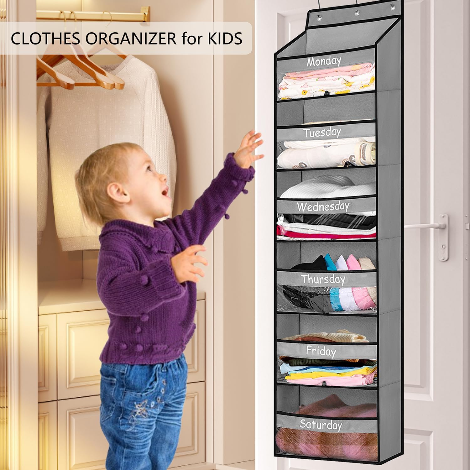 Versatile usages of this toddler closet organizer for week, can be also used to organize anything that you want to separate day by day, like daily homework schedule, newspaper and magazine,etc.