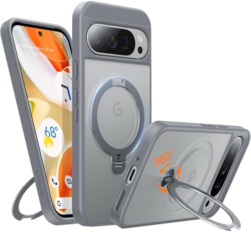 TORRAS 360 Spin Magnetic Stand for Google Pixel 9 Pro XL Case, 12FT Military Grade Protection, Compatible with Magsafe, Shockproof Slim Pixel 9 Pro XL Phone Case with Kickstand, Gray