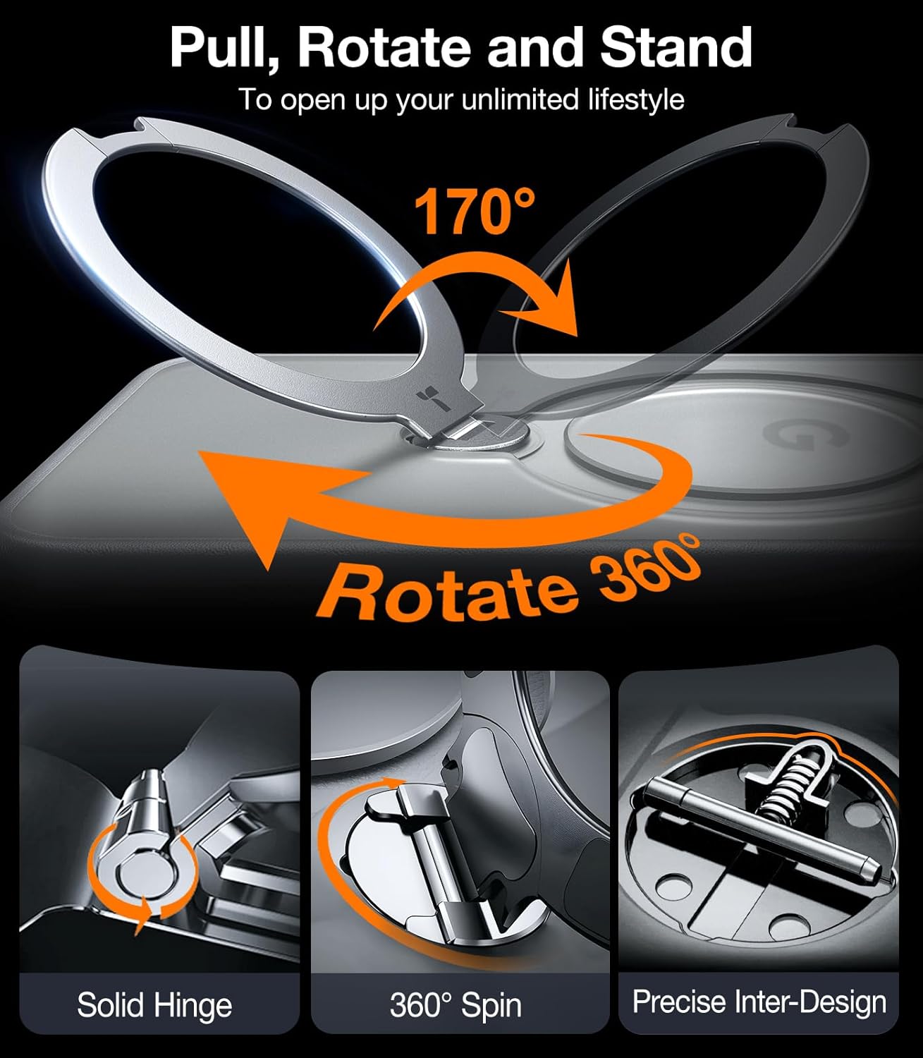 Innovation Pioneer—360° Spin Stand: Stable, Adjustable, Durable. Are you tired of ring stand cases that won't adjust laterally? The shockproof Pixel 9 Pro XL case with kickstand provides the versatility you need. Easily switch from vertical video calls to horizontal TV viewing with flexible angles. The kickstand case undergoes over 30,000 open/close tests, guaranteeing enduring reliability for everyday pleasurable use.