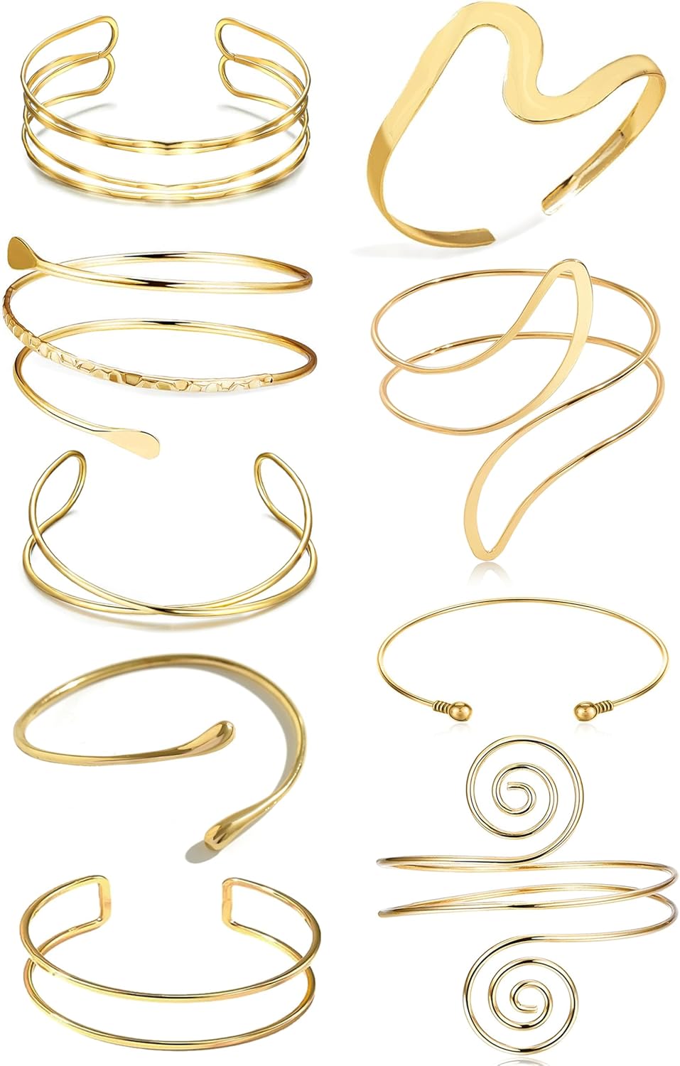EIELO 9 Pcs Arm Cuff Bracelets for Women Upper Arm Bands Armband Armlet Cuff Bangle Adjustable Golden Arm Bracelet Set