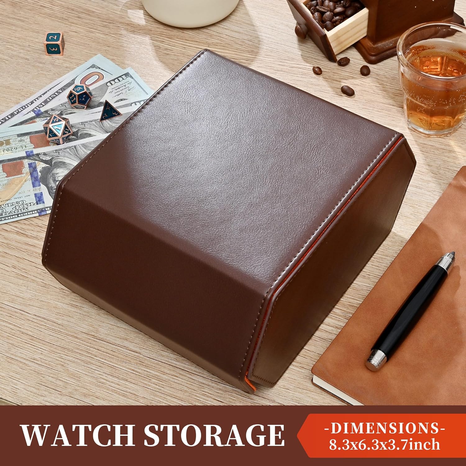 Watch Protection:This Brown watch box is made of high-quality recycled leather and soft velvet For better protection and functional way to store up to 4 watches.