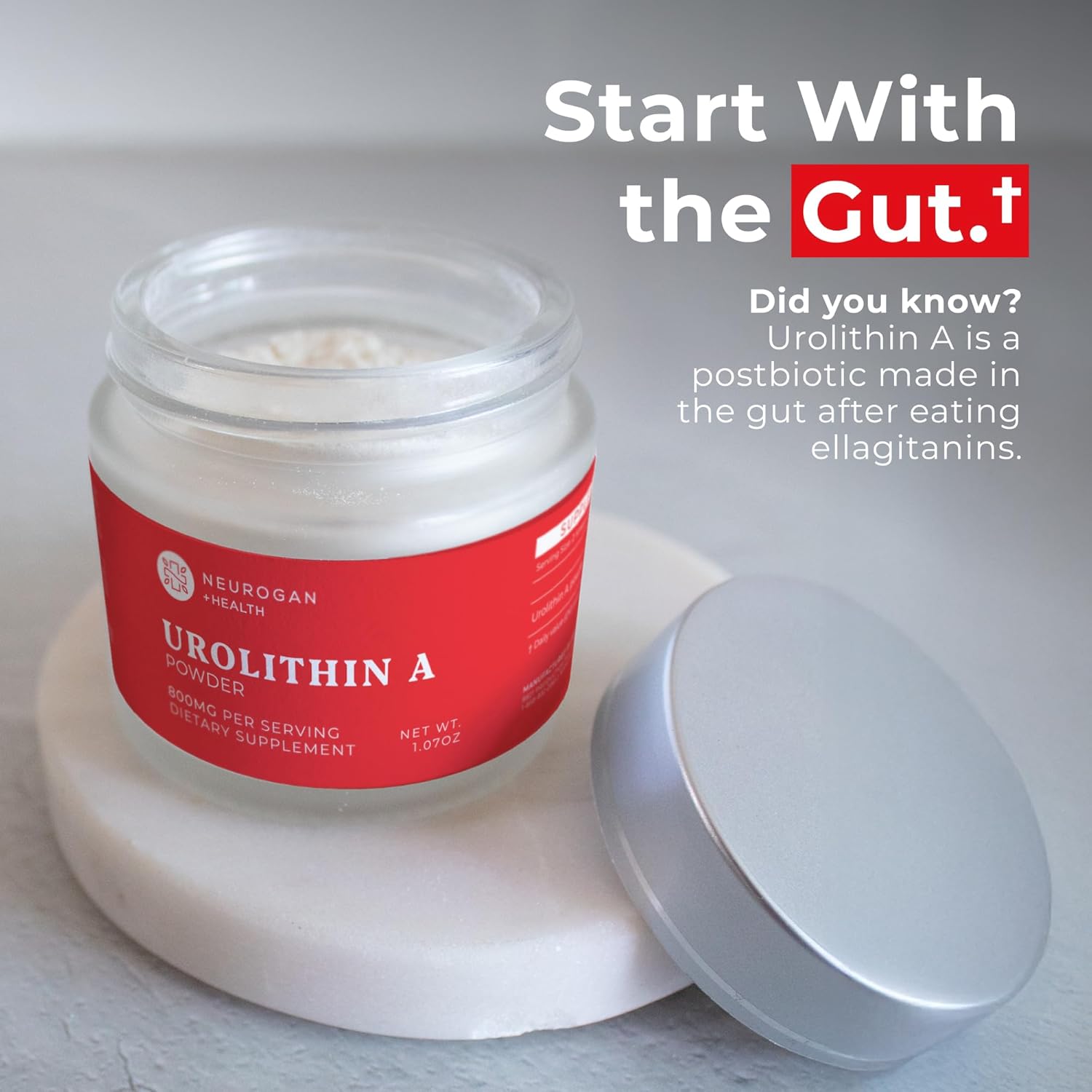 Neurogan Health Urolithin A Powder 800mg - Daily Wellness -Vegan, Non-GMO, Gluten-Free - 30.4g - Pure Urolithin A from Pomegranate Extract - Post Biotic Compound- No Fillers or Flavorings