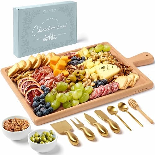 Charcuterie Board Set - Solid Wood Cheese Board for Serving with Accessories - House Warming Gifts for New Home, Bridal Shower & Wedding Gift, Birthday Gifts for Women