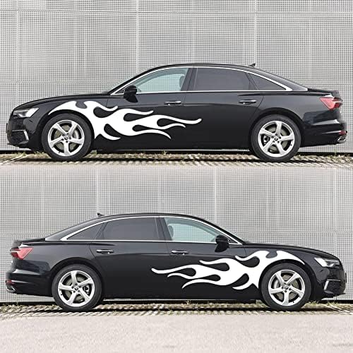 2 PCS Car Body Stickers Large Flame Graphic Decals Car Door Decoration Stickers Car Styling Exterior Accessories, 47.24x11.81in (White)