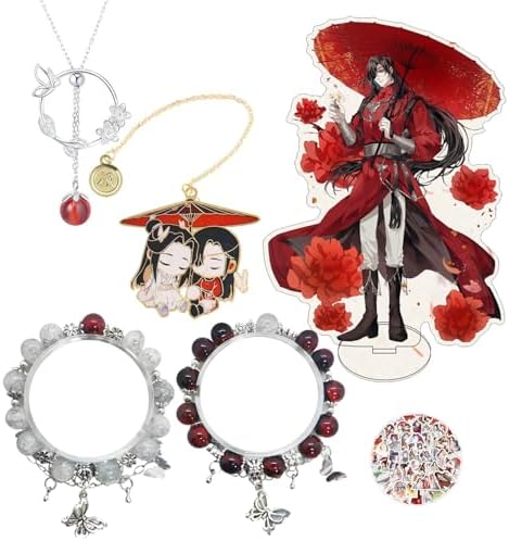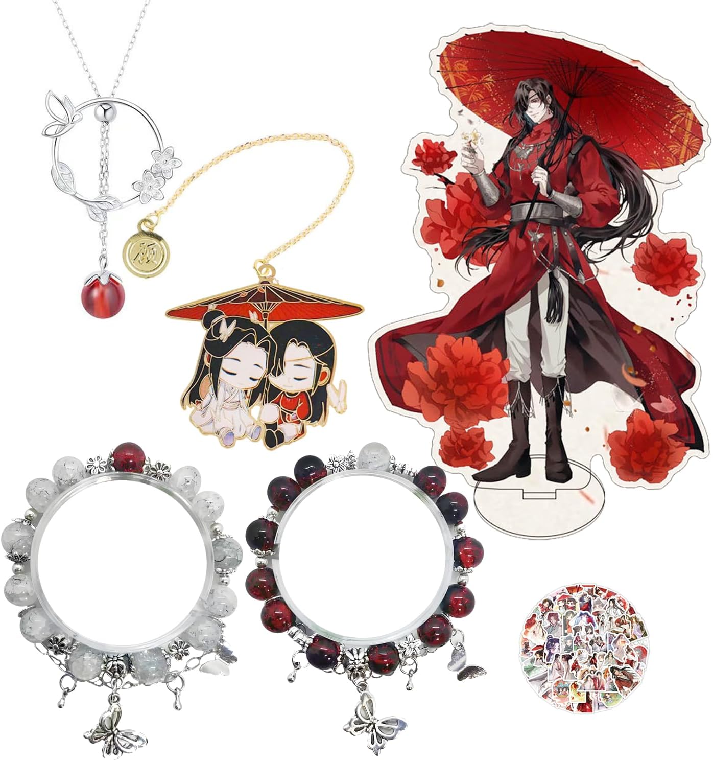Heaven Official's Blessing Jewelry Sets Hua Cheng Necklace Best Friends Bracelet Anime Acrylic Stand Decoration Tian Guan Ci Fu Bookmarks with Stickers 15 Pcs