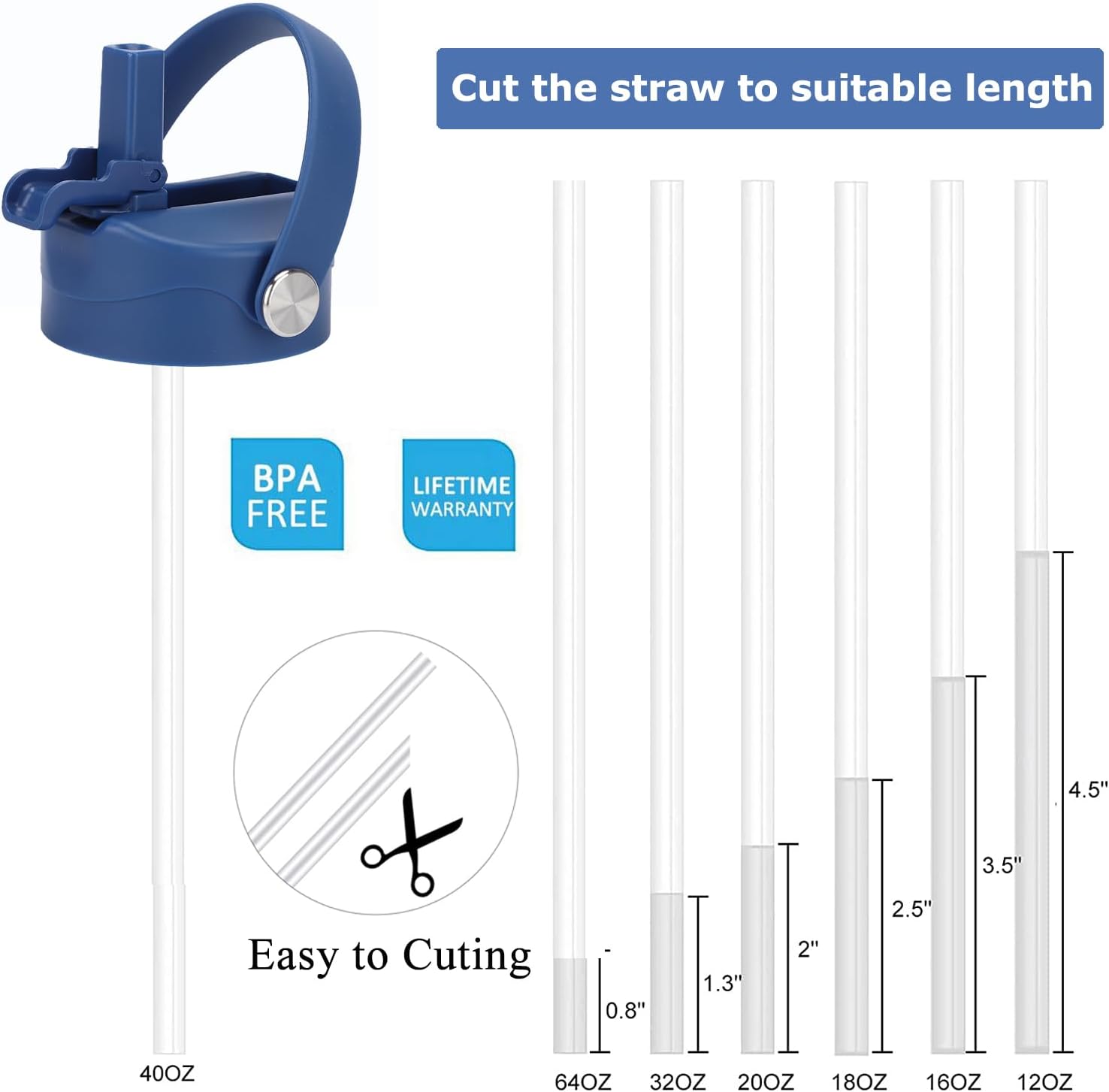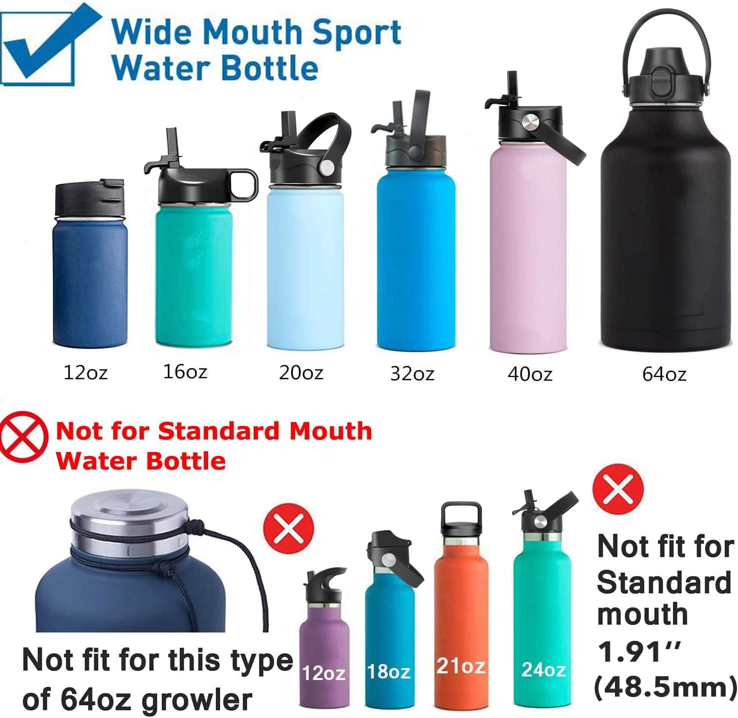 【Compatibility】:Straw lid compatible with hydroflask wide mouth water bottle ,Perfect fits the 12 oz 16 oz 18 oz 32 oz 40 oz and 64 oz wide mouth drink bottles. NOTE: Except for 40 oz. The straws must be cut to fit your other capacity Water Bottles.(Includes 12 oz 16 oz 18 oz 32 oz 64 oz)REMINDER: NOT for narrow or standard mouth water bottle, NOT for tumbler
