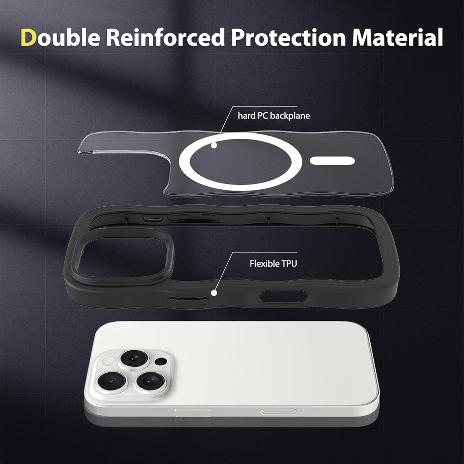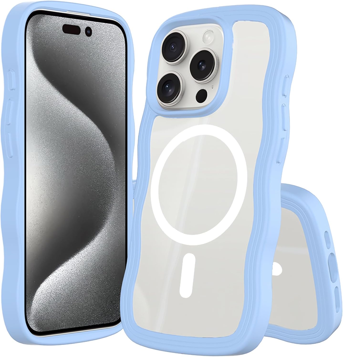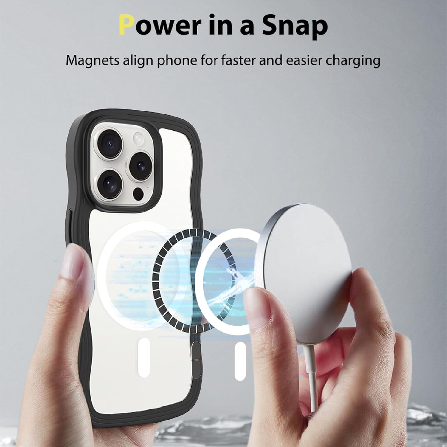 Woluki Magnetic Clear Back Case for iPhone 16 Pro Max 2024 Compatible with MagSafe,Cute Curly Waves Frame Transparent Hard PC Back Stylish Durable Anti Drop Shockproof Protection Phone Case. 1.Compatible Phone : Designed case for iPhone16 Pro Max,not compatible with other phone models. 2. This iPhone 16 Pro Max case made of shock-absorbing TPU waves frame and hard pc clear back,this lovely wave case offers enough protection to your device, protecting it against daily unwanted scratches, drops and bumps. 3. Built-in strong magnetic magnet support magsafe charger, delivers automatic adsorption and seamless alignment for the fastest and stable possible charging,without removing this curly shape phone case. 4. Lovely curly frame makes your phone more stylish and eye-catching, adding much grip thanks to the wave shape frame. A chic design and maintain originality. 5. Raised bezels more comprehensive protection of the phone screen and camera lens from drops and scratches.
