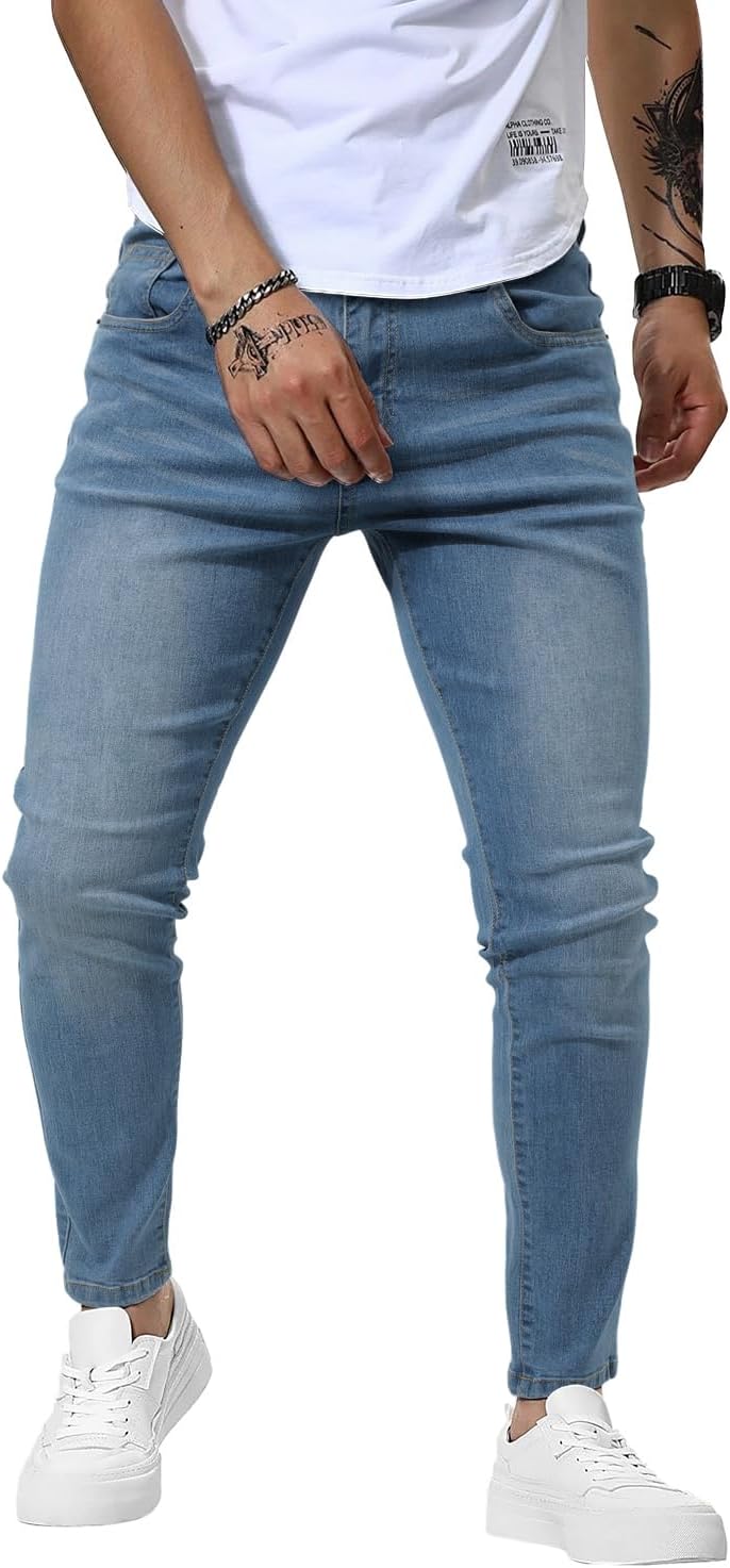 Woenzaia Mens Jeans Slim Fit Skinny Denim Stretch Tapered Jean Pants