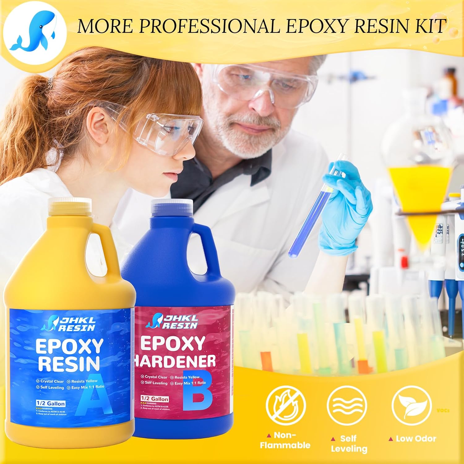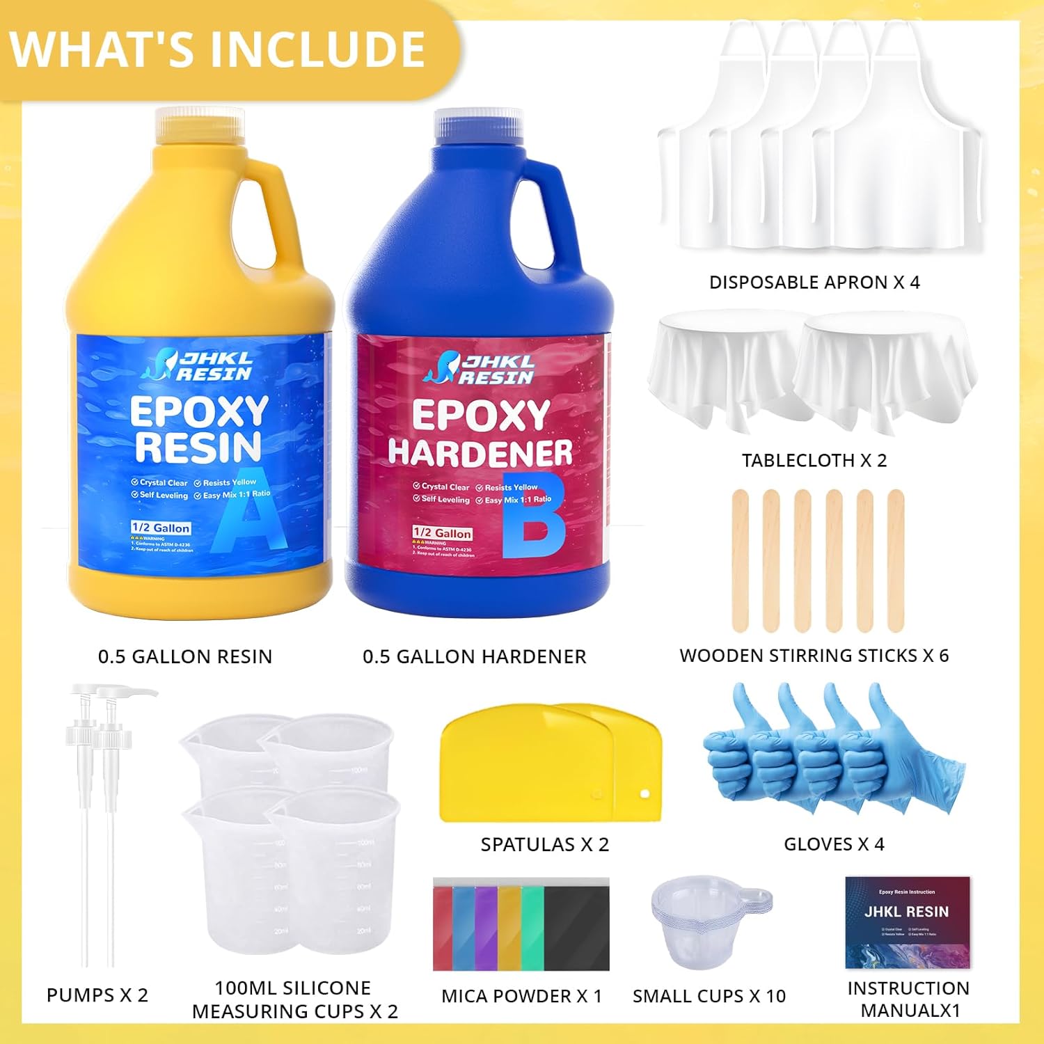 Epoxy Resin Kit 1 Gallon Crystal Clear, No Bubble & Not Yellowing Gallon for Casting & Coating, Table Top, Epoxy Resin DIY Jewelry Making, Art Crafts, Wood & Resin to Easy Mix 1:1