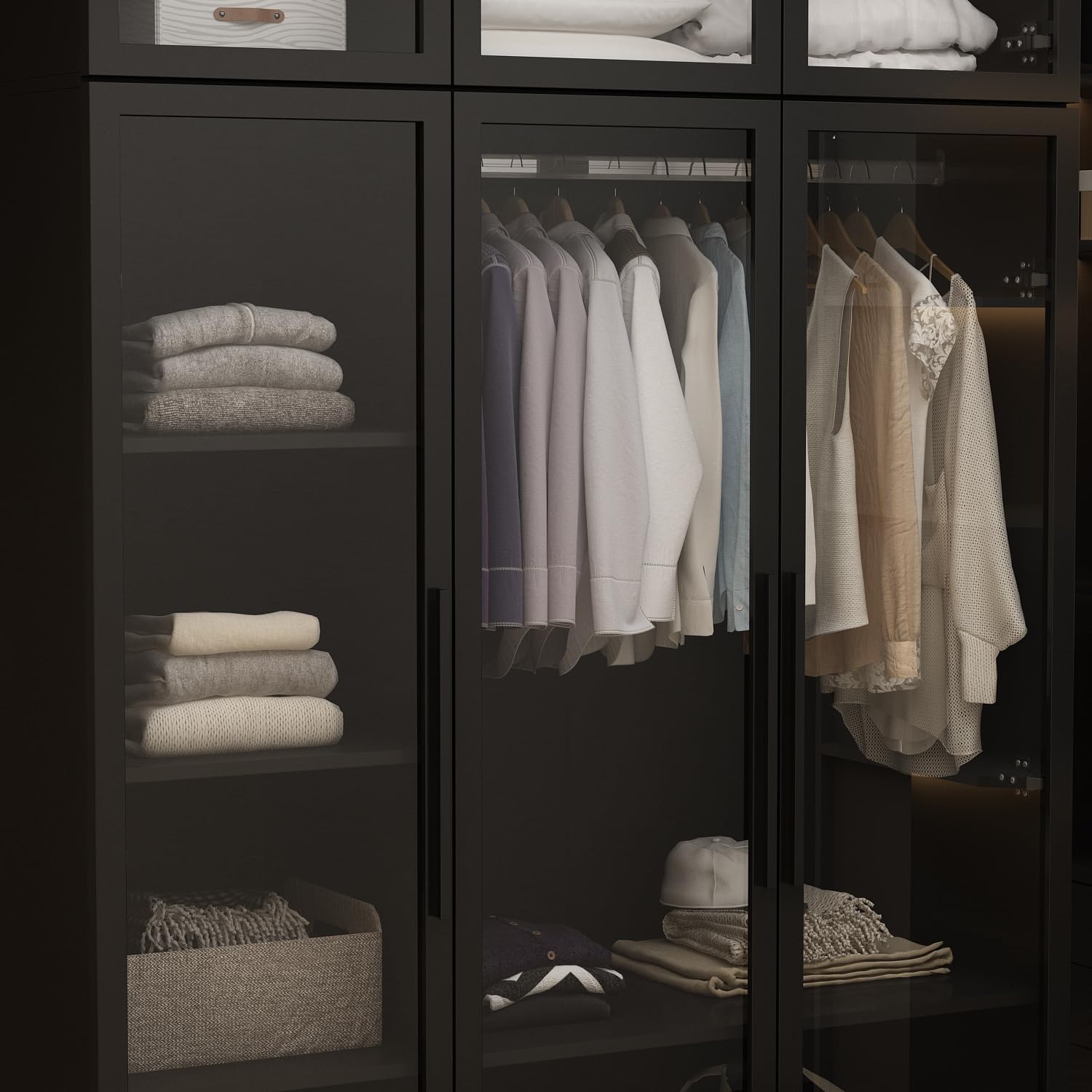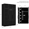 Hitow Wardrobe Cabinet with LED Lights, Armoire Closet with Glass Doors, Wooden Large Wardrobe with Hanging Rod & 5 Tiers Shelf, Modern Bedroom Armoire Clothes Organizer, Black 47.2" W