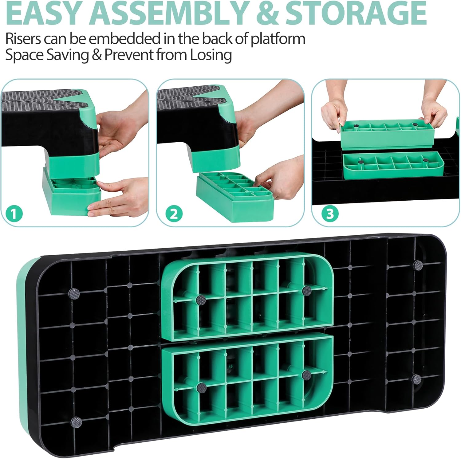 【Portable & Space Saving】It’s lightweight and portable, so you can take it to anywhere. The risers can be locked underneath for easy storage, also space saving. Work out in shoes or bare feet, easily maintained and cleaned