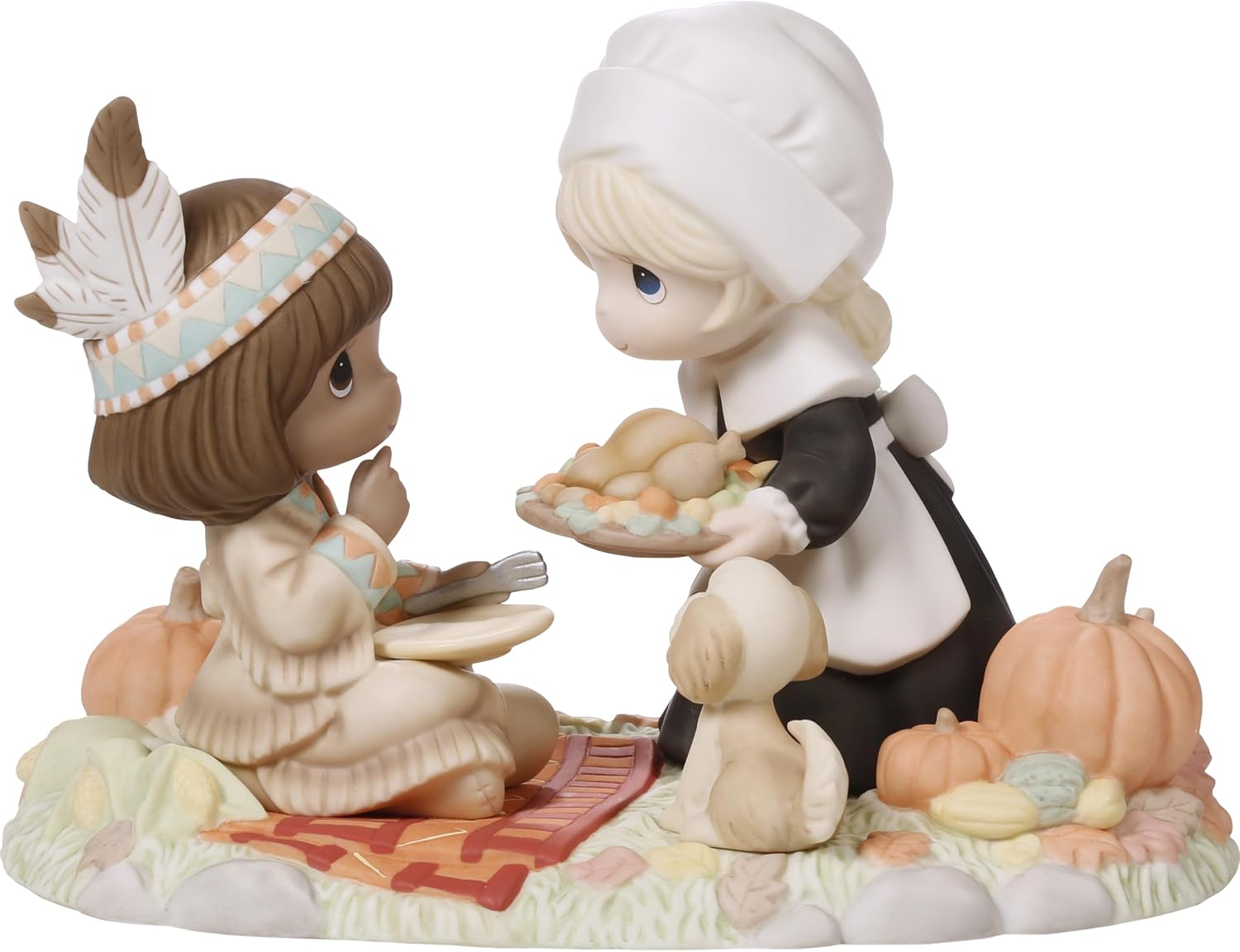 Precious Moments Limited Edition Thanksgiving Figurine - First Thanksgiving Scene Bisque Porcelain Figurine - Fall Home Decor & Gifts