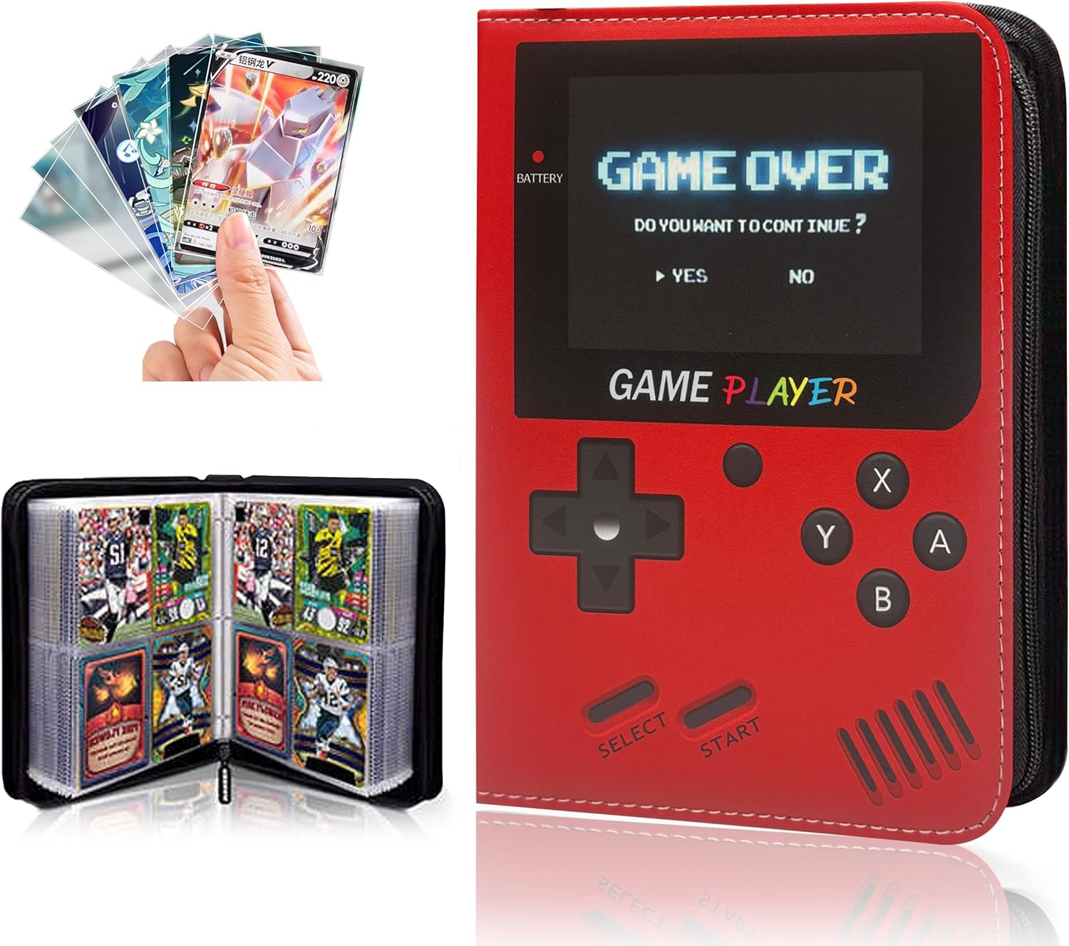 Card Binder for Trading Card Game, for Yu-Gi-Oh!,for Magic: The Gathering, and Sports Card Binder - 4-Pocket Sleeves for PTCG and MTG Binder, Holds 400+ Cards - Includes 100 Extra Card Sleeves (Red)
