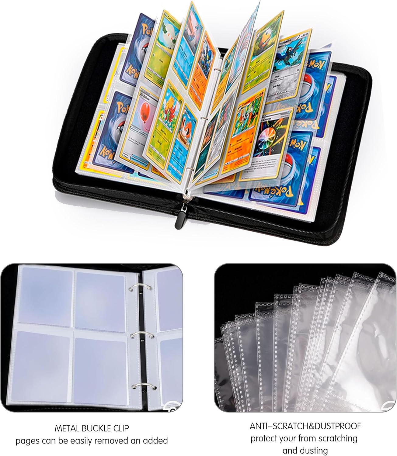 🧱【Large Capacity】This trading card holder can hold over 400 trading cards, featuring four pockets on each side. You can store cards on both the front and back, ensuring that you never have to compromise on storage space for Trading Card Game, for Yu-Gi-Oh!,for Magic: The Gathering, and Sports Cards. It’s perfect for organizing and protecting all your favorite trading cards!