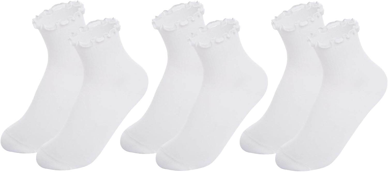 3 Pairs Girls Ruffle Socks, Toddler girls Pleated Frilly Crew Dress Socks for 1-12 Years Dress and Daily