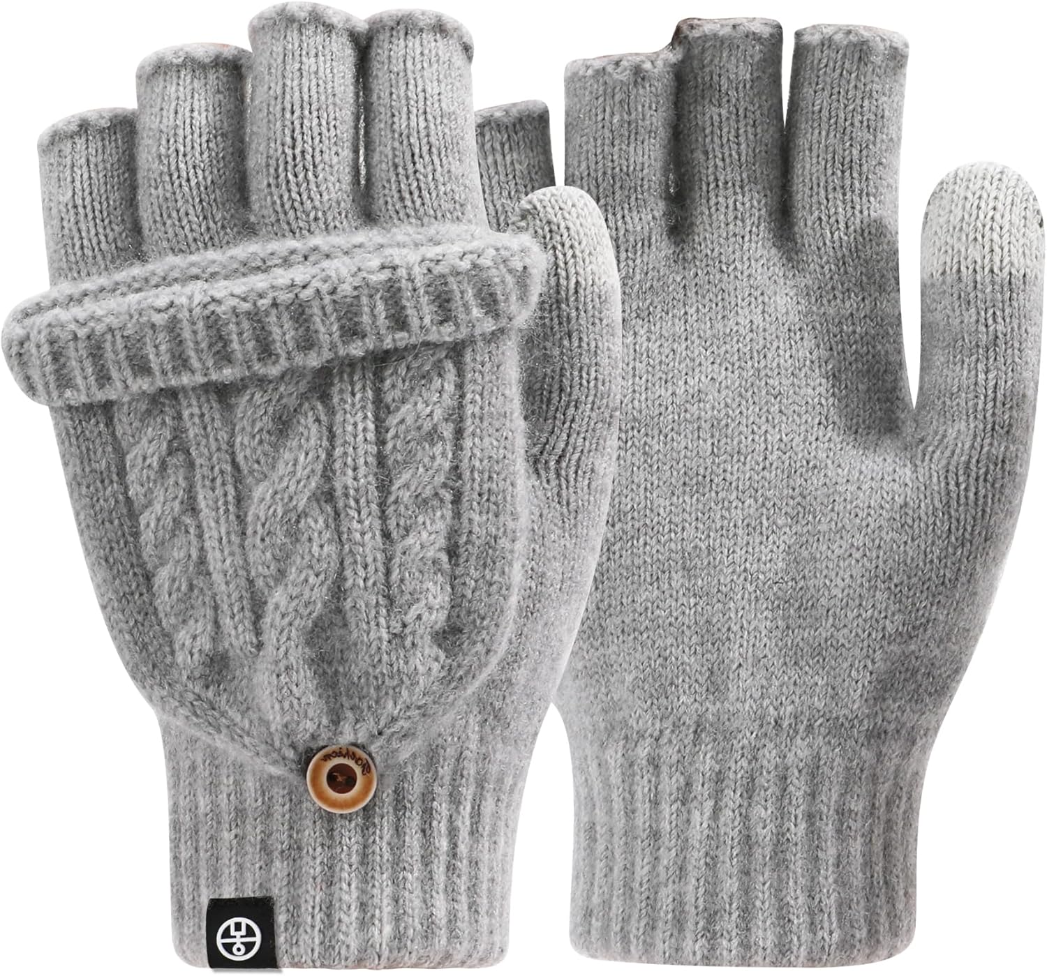 Winter Fingerless Gloves for Women Men Warm Knitted Convertible Mittens Flap Cover