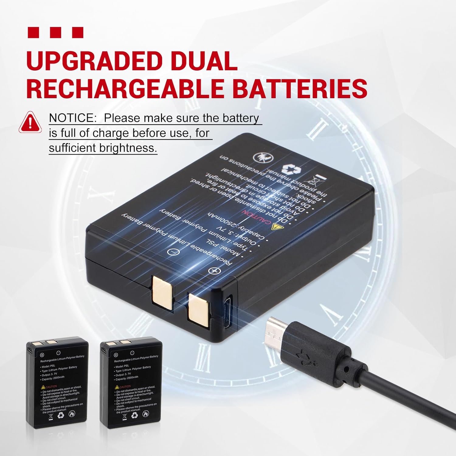 NOTICE: Please make sure the battery is full of charge before use, for sufficient brightness