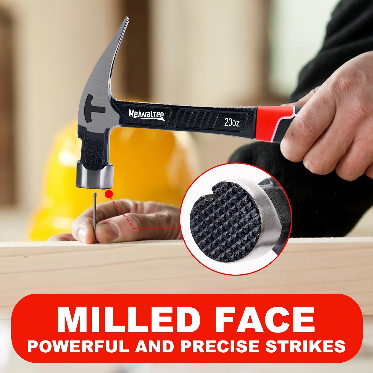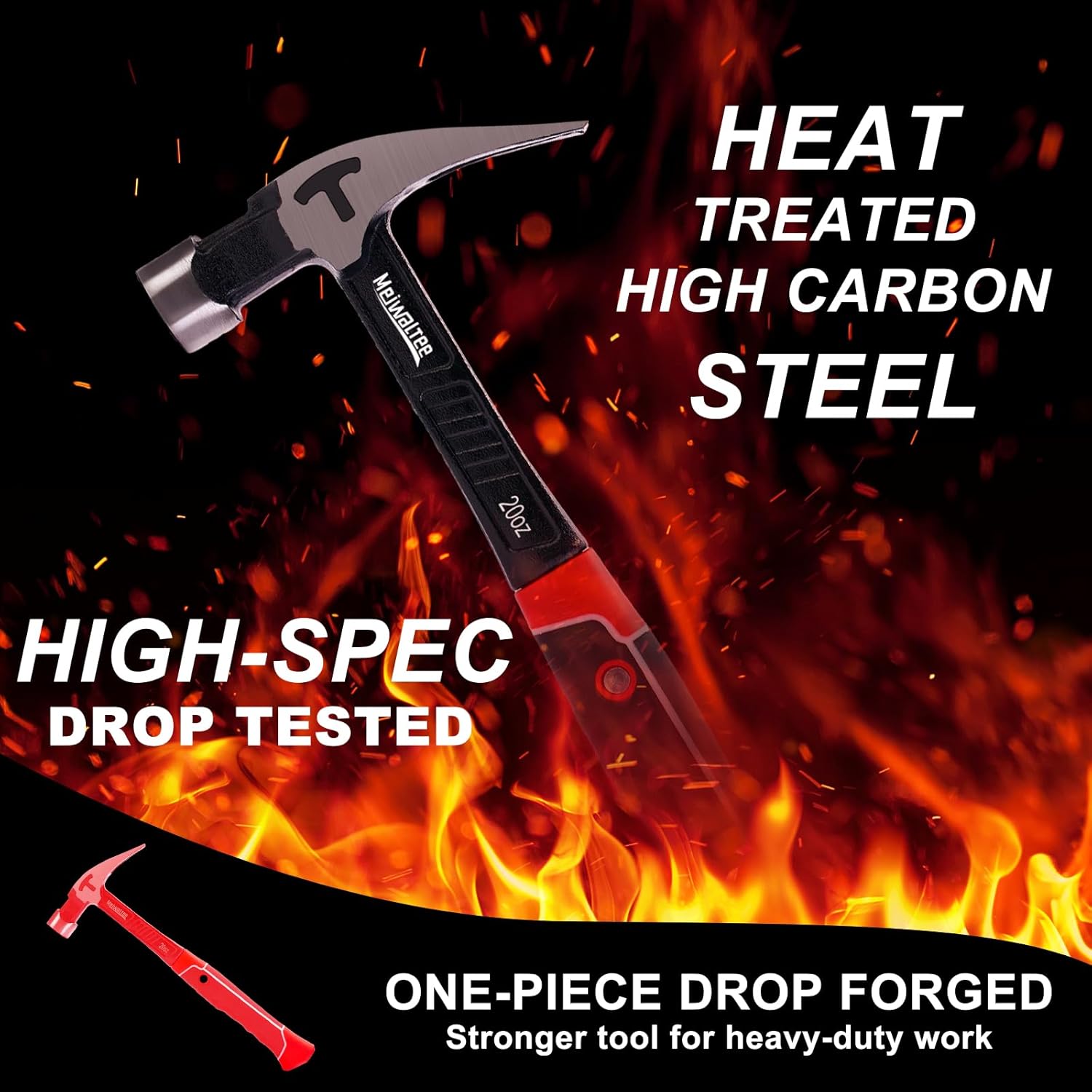 Meiwaltee 20 oz Heavy Duty One-piece Forged Hammer, Straight Claw Hammer with Magnetic Nail Holder, Rip Claw Hammer with Milled Face & Shock-Absorbing Reduction Grip
