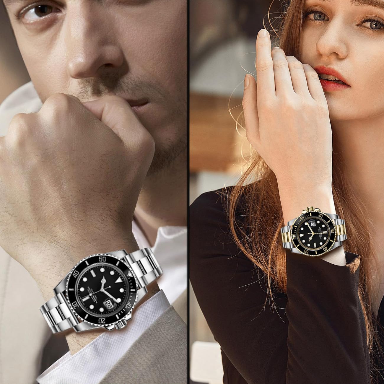 20mm 22mm Metal Watch Band for Men Screw-In Stainless Steel Watch Band Straight with Curved Ends Watch Bracelet Replacement Strap with Classic Diving Buckle Sliver-Gold