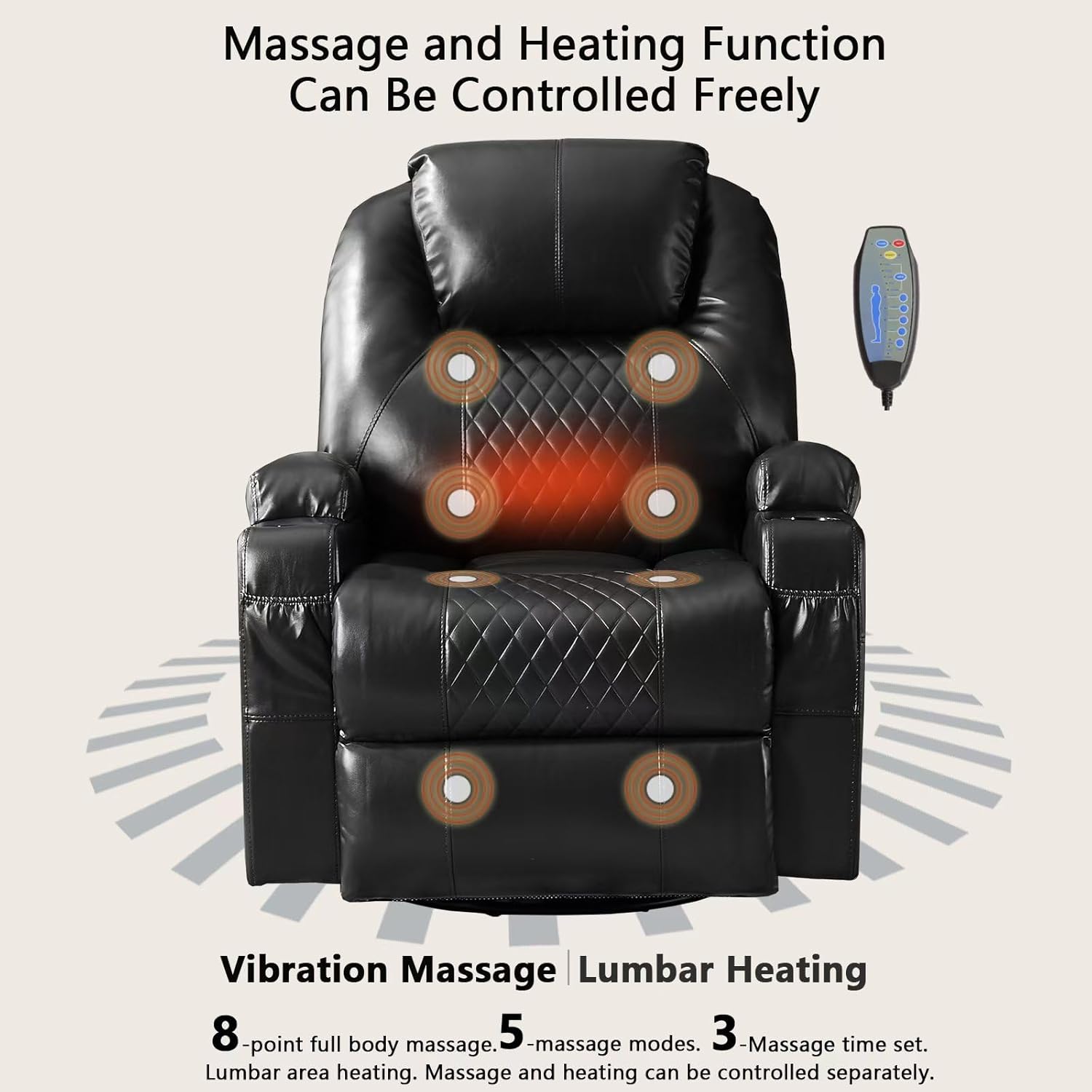 Endless Relaxation: The smooth and gentle 270° swivel does not make the swivel recliner chair stiff when used. It features a 30° swinging function, 8-point vibration massage, and waist heating for ultimate comfort and relaxation. Ideal for unwinding and rejuvenating