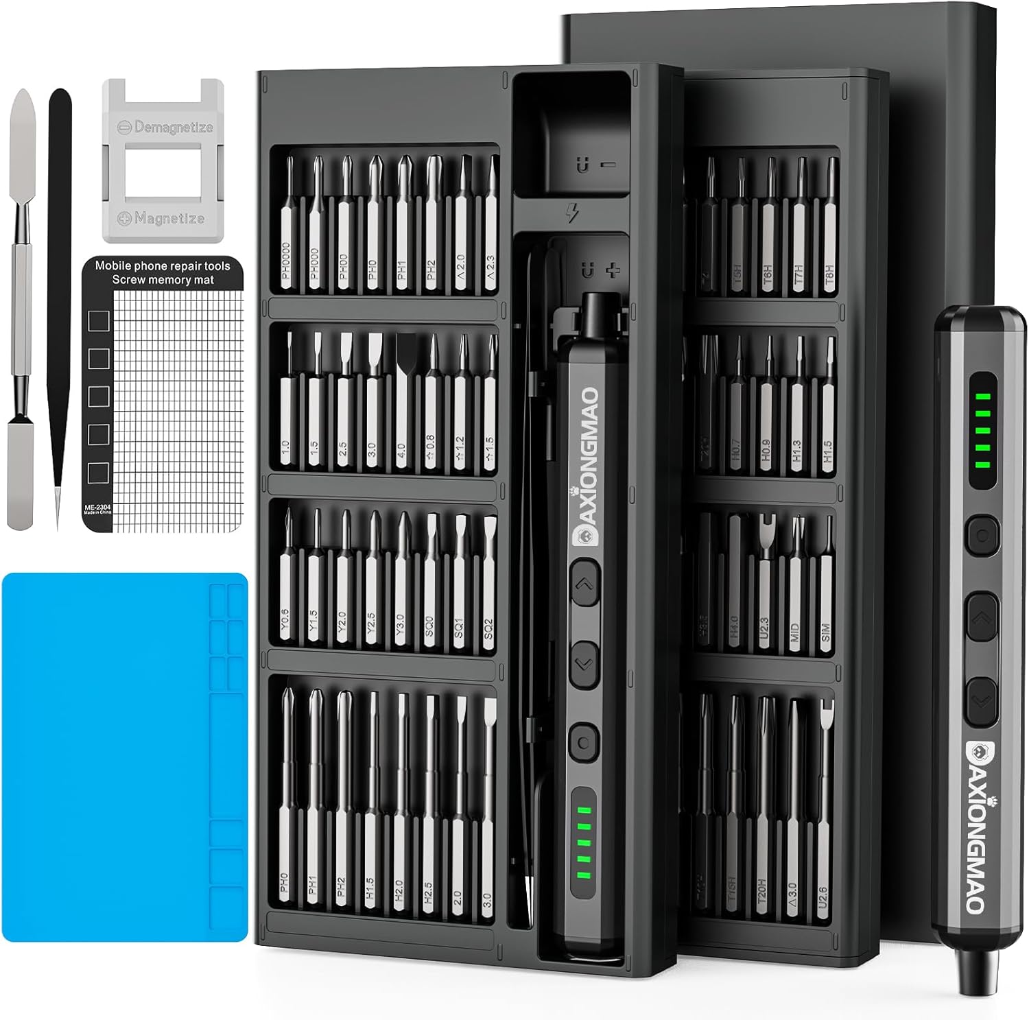 🎁【Pro-Grade Accessories|Complete Repair Ecosystem】1 screwdriver ×1, magnetic case ×1, CRV bits ×64, precision tweezers ×1, pry bar ×1, screw gauge ×1, suction pad ×1, hanging ring ×1, USB-C cable ×1,1×silicone pad.Lifetime technical support—perfect for beginners to tech enthusiasts