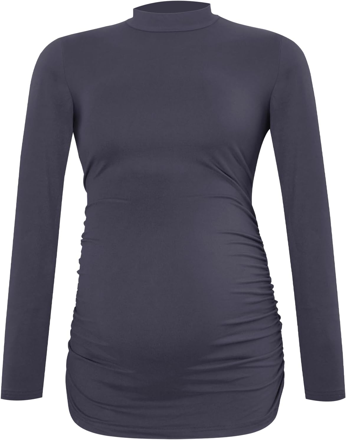 Smallshow Women's Maternity Shirts Crew Neck Long Sleeve Pregnancy Clothes Tops 3 Pack
