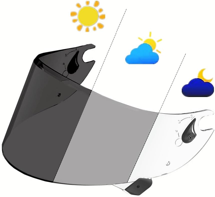 One Shield All Conditions: Race R PRO Photochromic Visor automatically adapt to the optimal tint in all light conditions and are clear at night and dark smoke in bright light.They provide seamless tint adaptation, visual quality and optimal protection.