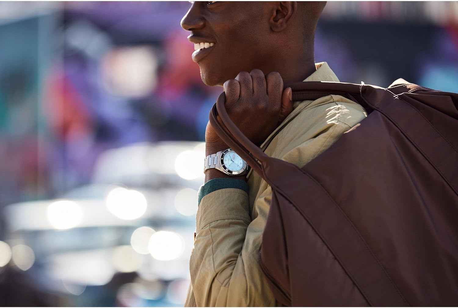 Experience the fusion of sporty style and everyday functionality with the Sport Automatic, the latest timepiece in our Automatics Collection featuring a high-performance movement. A 42mm silver-tone stainless steel case provides the foundation of the watch, with smartly integrated crown guards, a bold two-tone 60-minute bezel, and a silver-tone stainless steel bracelet adding to its sporty credentials. Underneath a sapphire crystal, the light blue dial makes a striking statement with a sunray finish paired with bold geometric appliques for an aesthetic that’s as legible as it is captivating. With a retro-cool day-date display at 3 o’clock and water resistance up to 100 meters, this timepiece offers charm and practicality for your daily adventures. Caliber 8200.