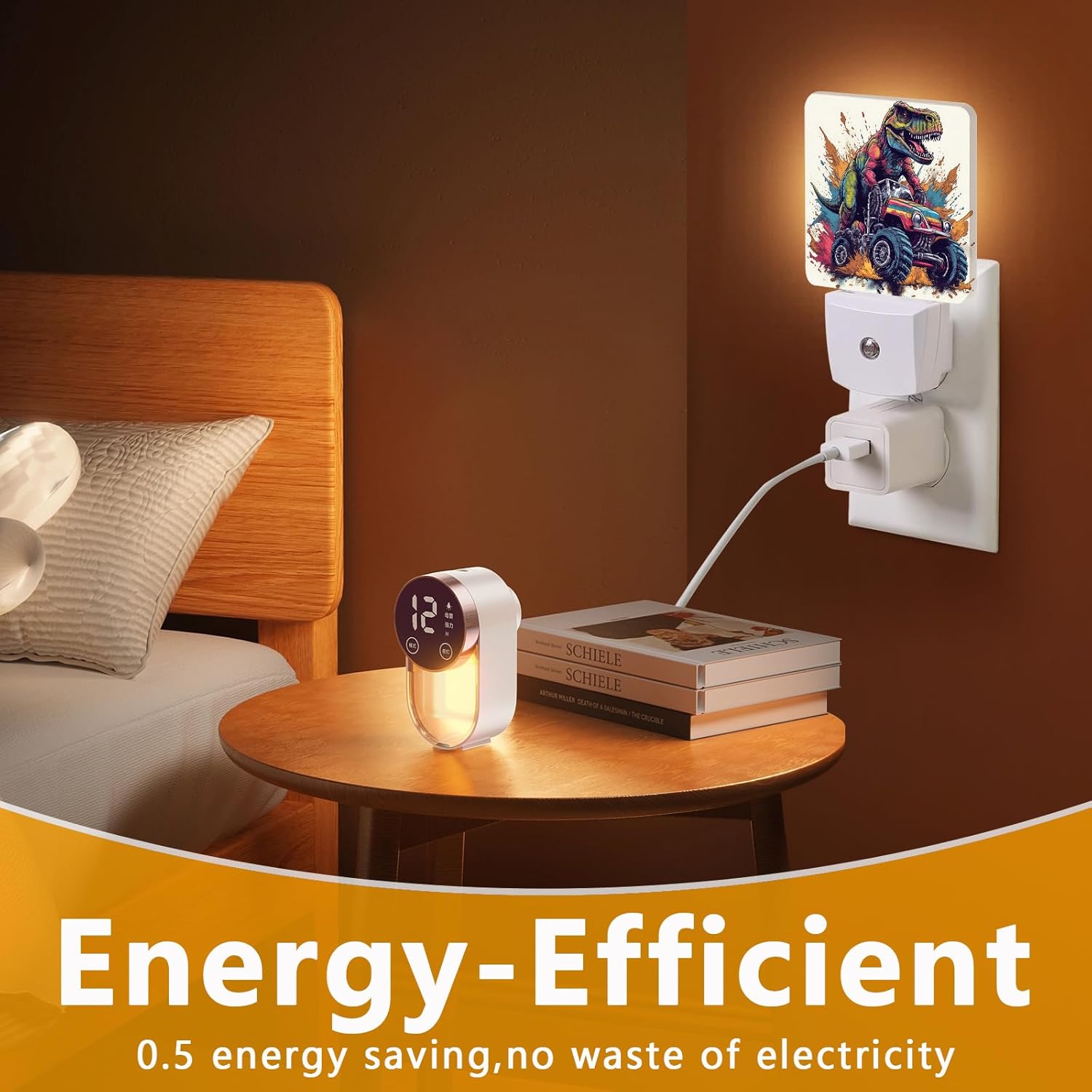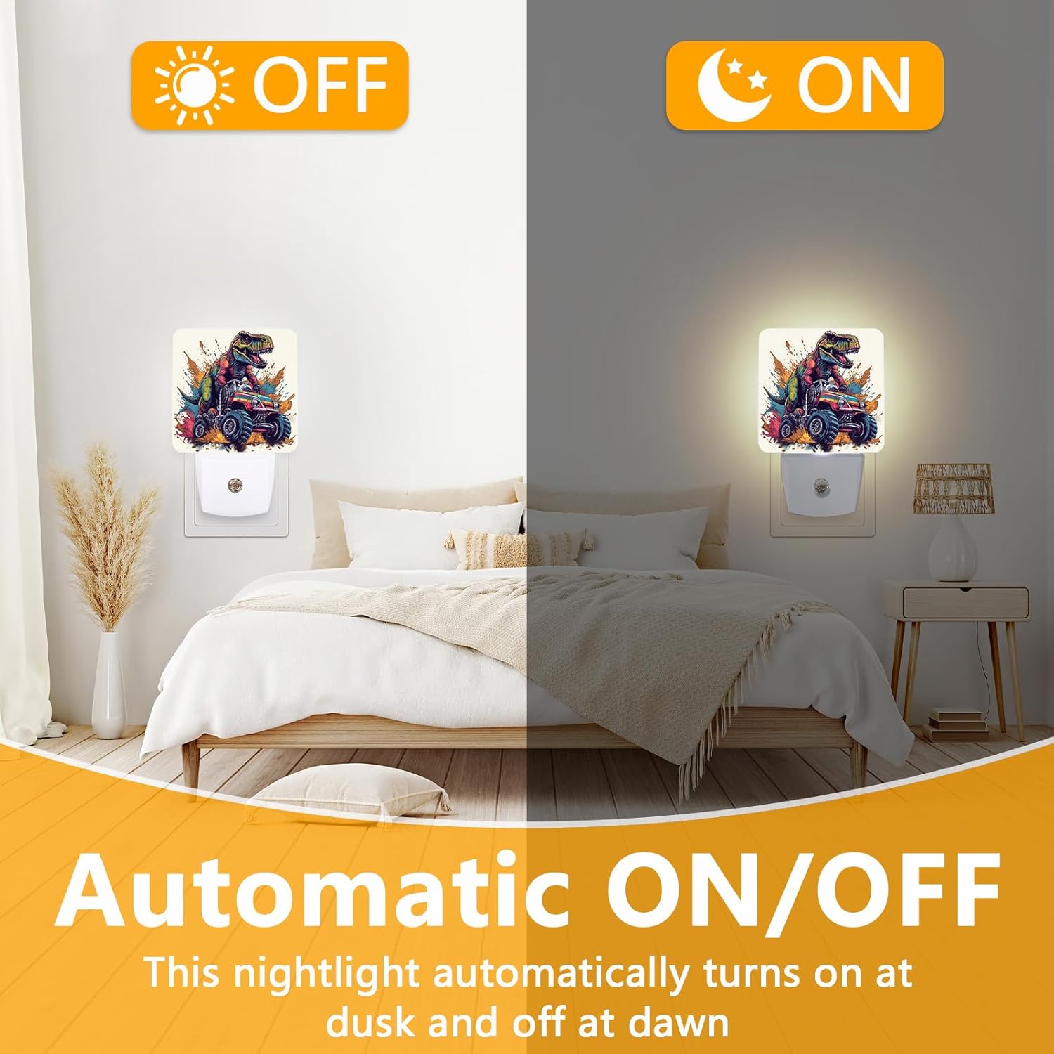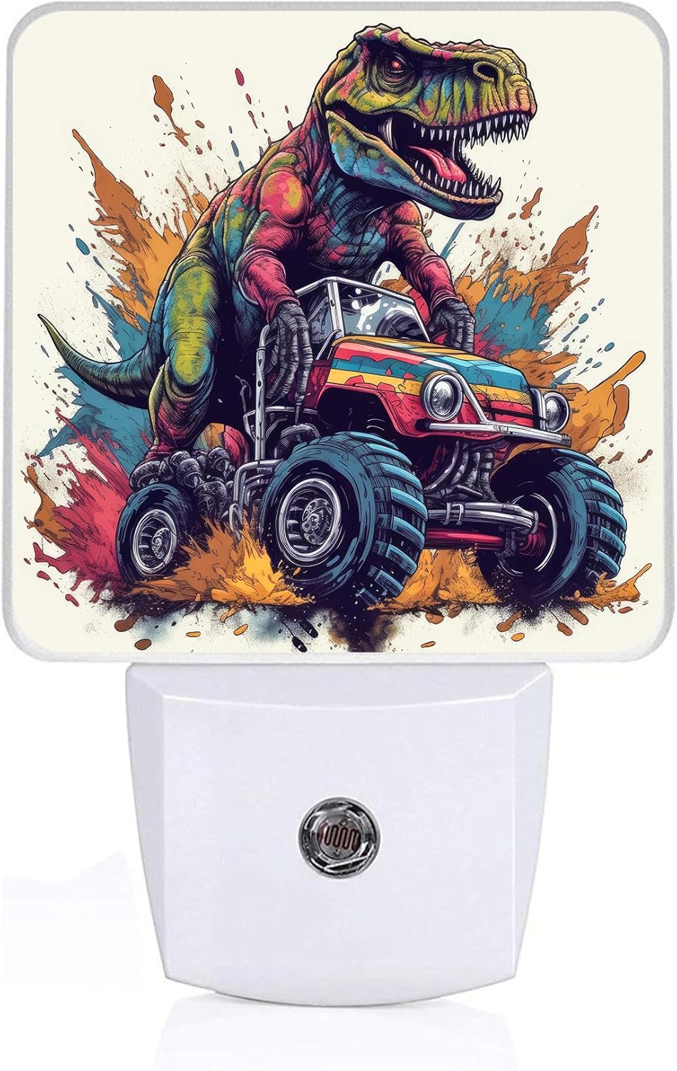 Dinosaur Monster Truck Night Light, Plug-into Cool Vehicle Cars Nightlight White LED Lamp, Energy Efficient Decor Desk Lamp for Bedroom Hallway Stairs Bathroom