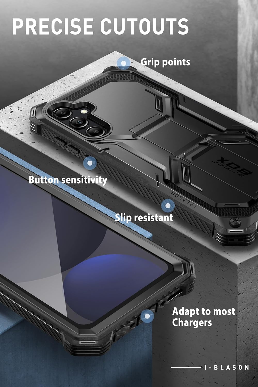 i-Blason Armorbox for Samsung Galaxy S24 FE Case with Stand & Belt-Clip [Built-in Screen Protector] [Military Protection] Full-Body Rugged Bumper Shockproof Phone Case with Kickstand (Black)