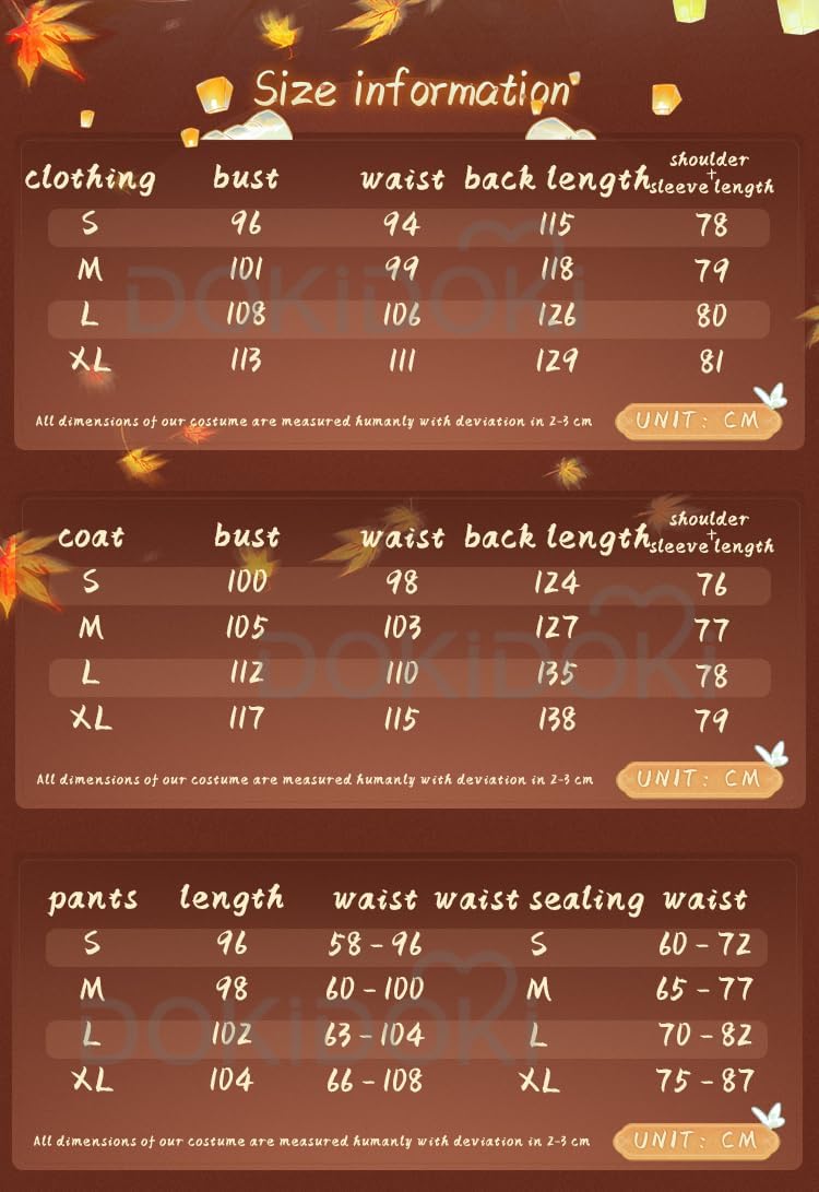 Description Costume only, doesn't include Bucket hat, wig, hat and shoes Asian size-Please read the size chart carefully. (◕ˇ∀ˇ◕) Welcome contact us for help about size choosing with your height, weight , waist, bust, hip measurement. Thank you for your patience and understanding!