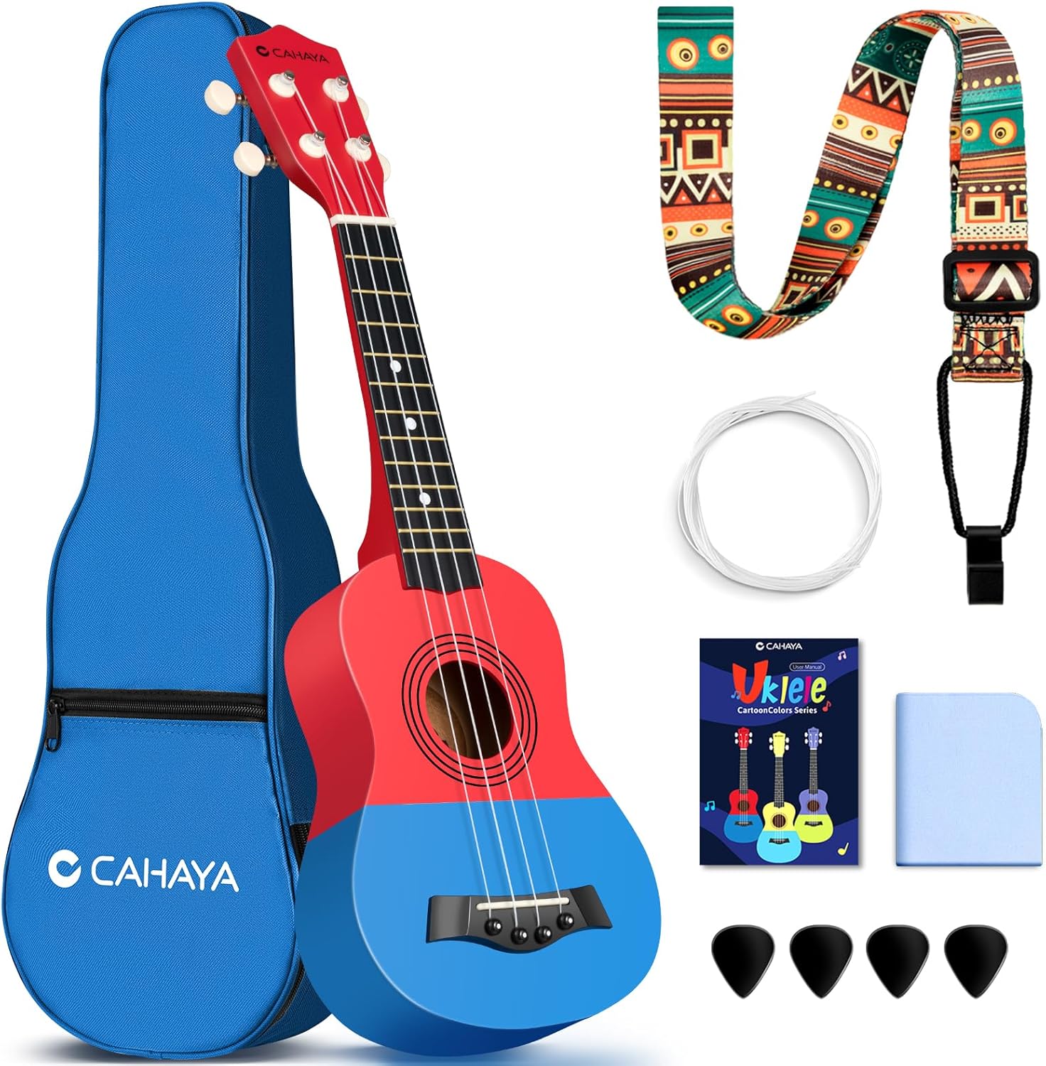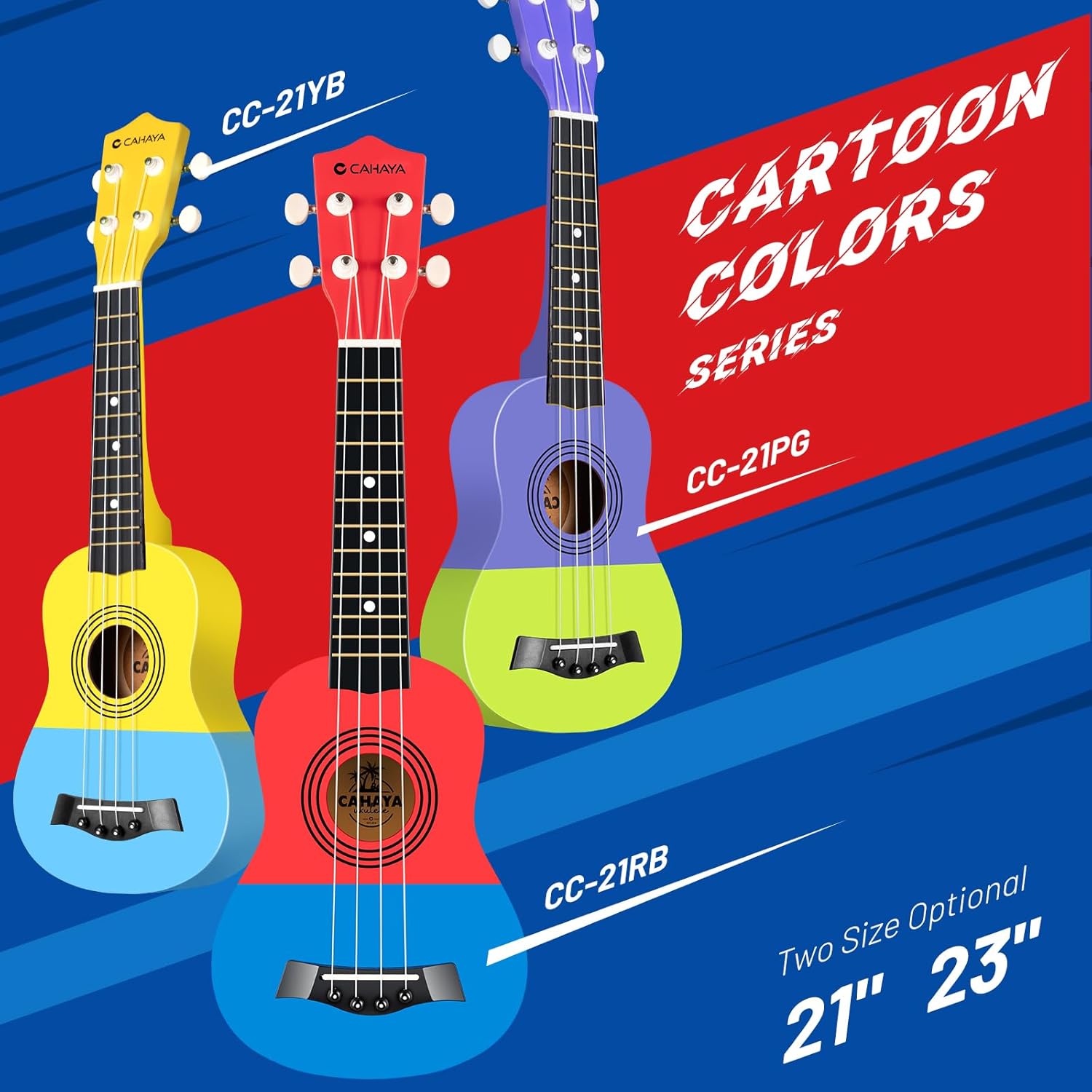 CAHAYA 21-Inch Cartoon-themed Mahogany Soprano Ukulele Beginner Kit with Gig Bag, Colorful Strap, and Fretboard Stickers—Perfect for Kids and Adults, Professional Hawaiian Ukulele Gift