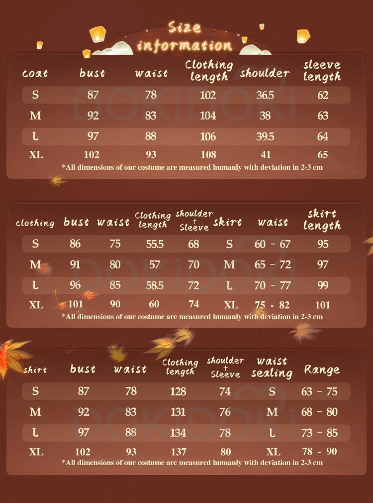 Description Costume only, doesn't include wig and shoes Asian size-Please read the size chart carefully. (◕ˇ∀ˇ◕) Welcome contact us for help about size choosing with your height, weight , waist, bust, hip measurement. Thank you for your patience and understanding!
