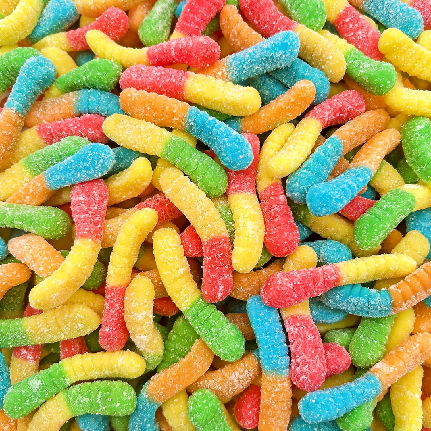Treat yourself to sweet and sour goodness with these neon sour gummy worms that will make your lips pucker