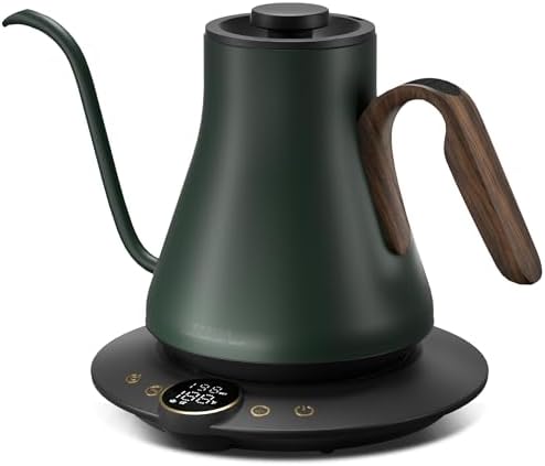 Gooseneck Electric Kettle with ±1℉ Temperature Control for Pour Over Coffee & Tea, Quick Heating, BPA-Free Stainless Steel, Built-in Brew Timer, 1500W/0.9L (Forest Green)