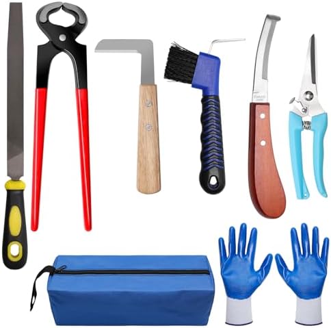 10 Inch 8 Pcs Farrier Tools, Horse Goat Hoof Trimmers for Goats and Sheep with Carbon Steel Nipper, Shears Nail Clipper, Rasp File, Hoof Trimming Cutter Knives, Horseshoe Brush, Storage Bag