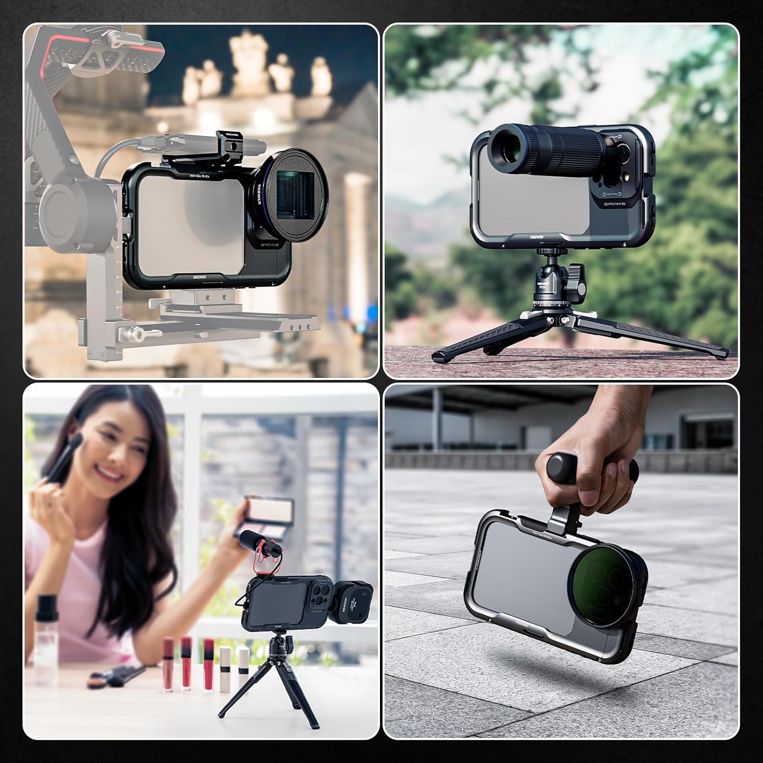NEEWER 16 Pro Max Caja, Soporte Rápido de Video para Teléfono Compatible con iPhone 16 Pro Max con Adaptador de Filtro de 67mm, Plato Trasero de Lente de 17mm, Adaptador de Lente de Montaje T Compatible con Moment, PA074